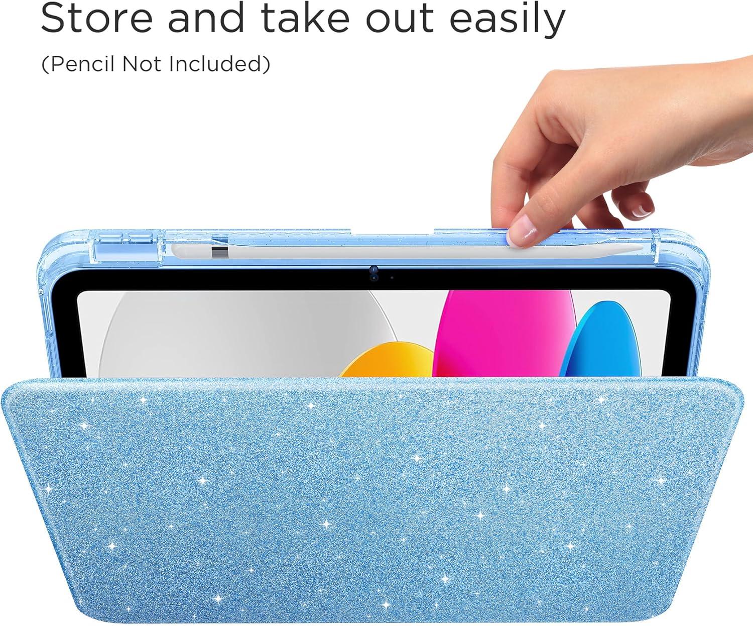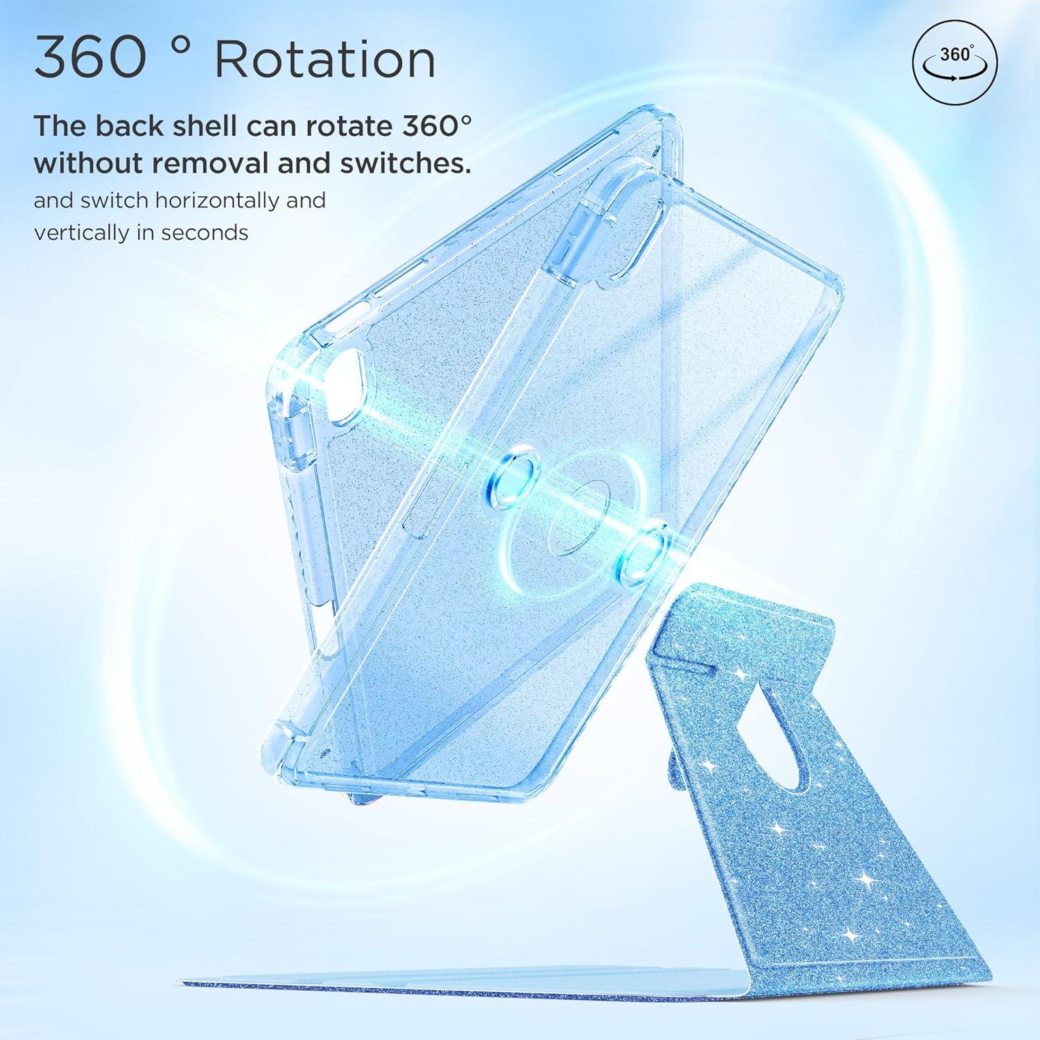 CACOE 360 Rotating Case for iPad (A16) 11th/10th Generation with Pencil Holder 2025/2022 11/10.9 inch, Shockproof Cover for iPad 11/10 Gen with Stand, Black(Sparkle Blue)