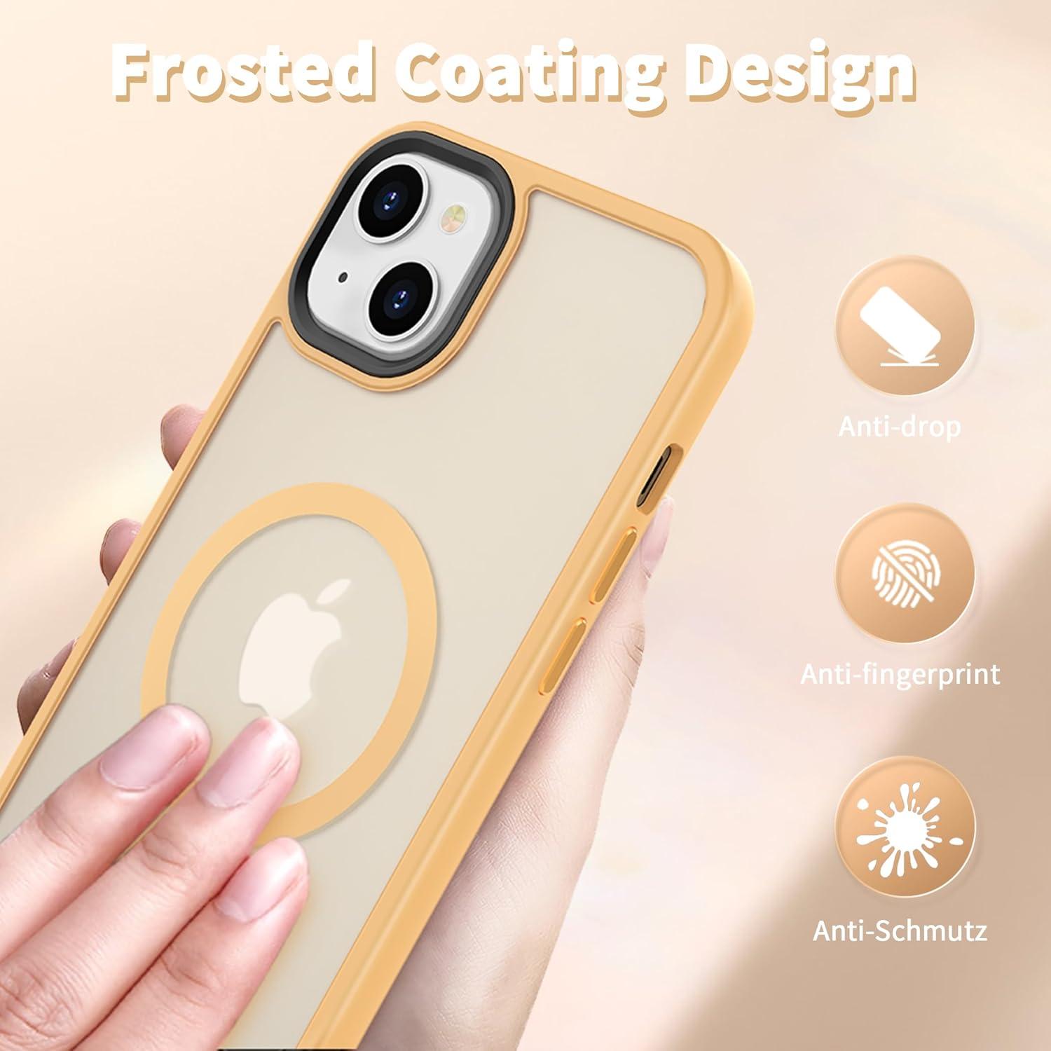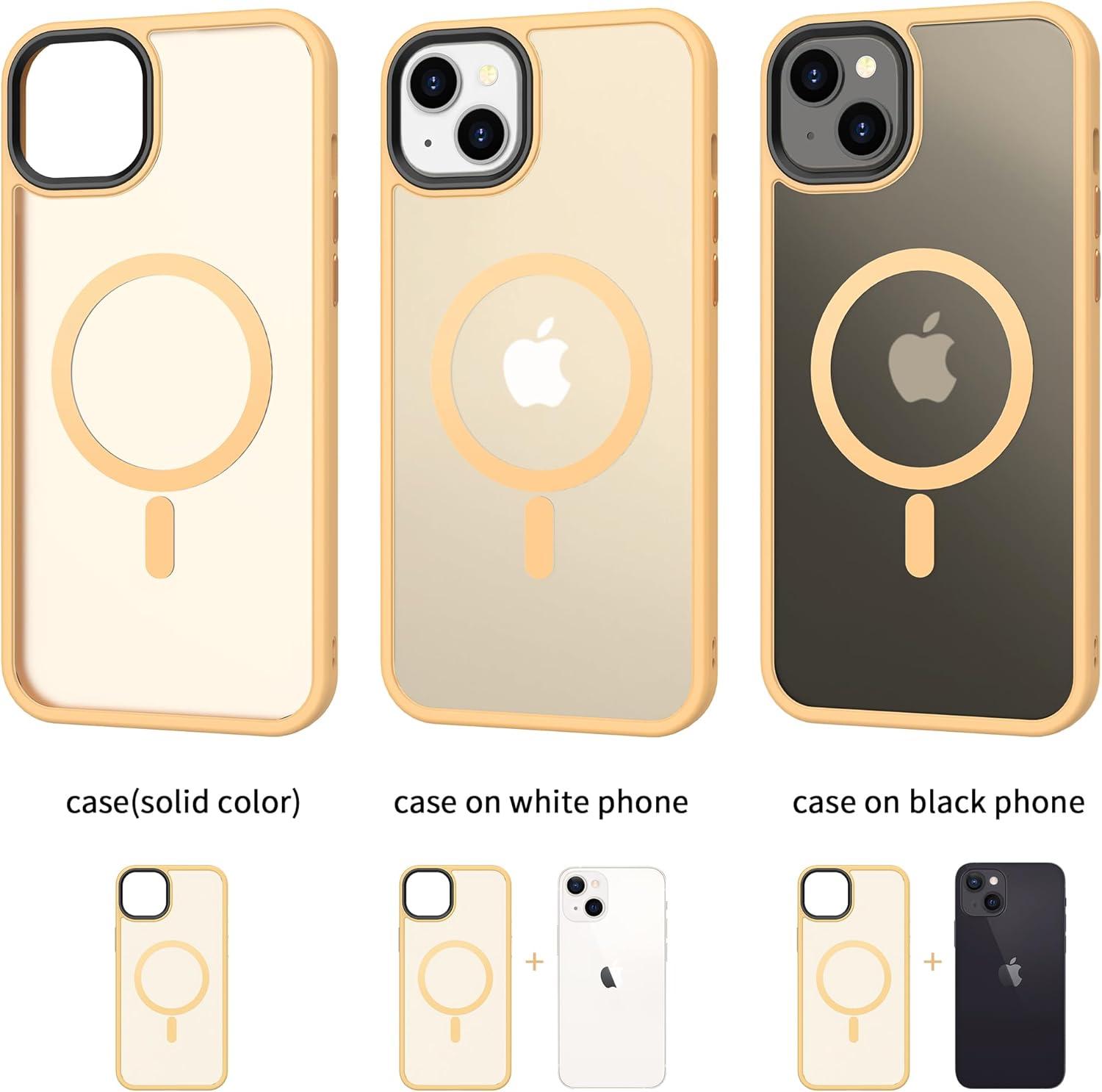 CACOE Magnetic Case for iPhone 16 6.1 inch, Compatible with MagSafe, Thin Slim Fit Anti-Fingerprint Shockproof Bumper TPU Protective Cover for Women Men Girls(Matte Black)(Orange Yellow)