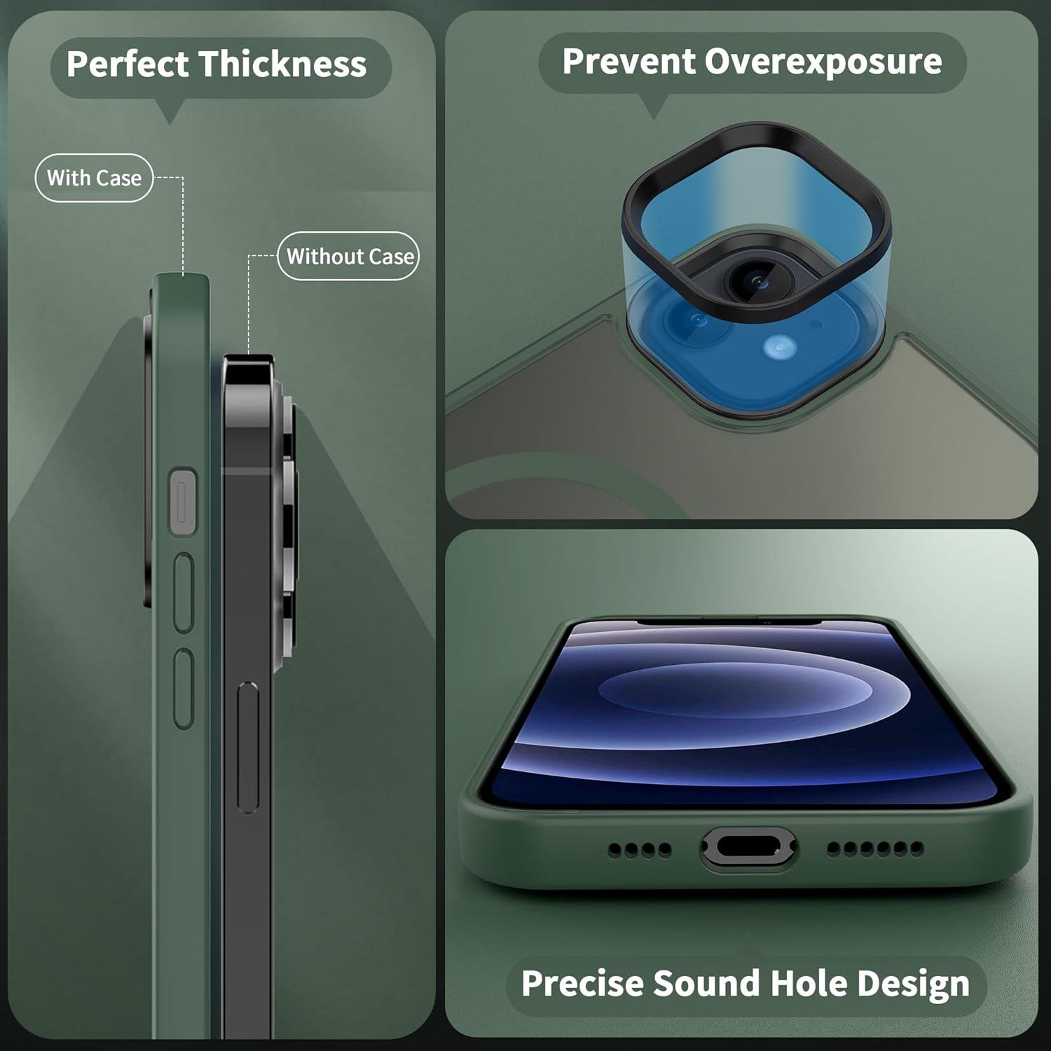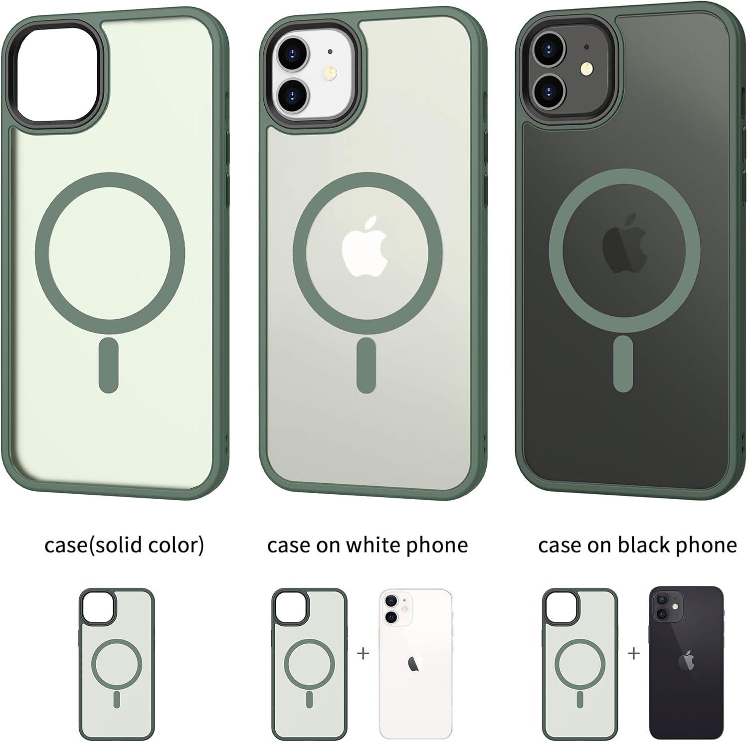 CACOE Magnetic Case for iPhone 16 6.1 inch, Compatible with MagSafe, Thin Slim Fit Anti-Fingerprint Shockproof Bumper TPU Protective Cover for Women Men Girls(Matte Black)(Dark Green)