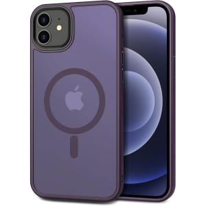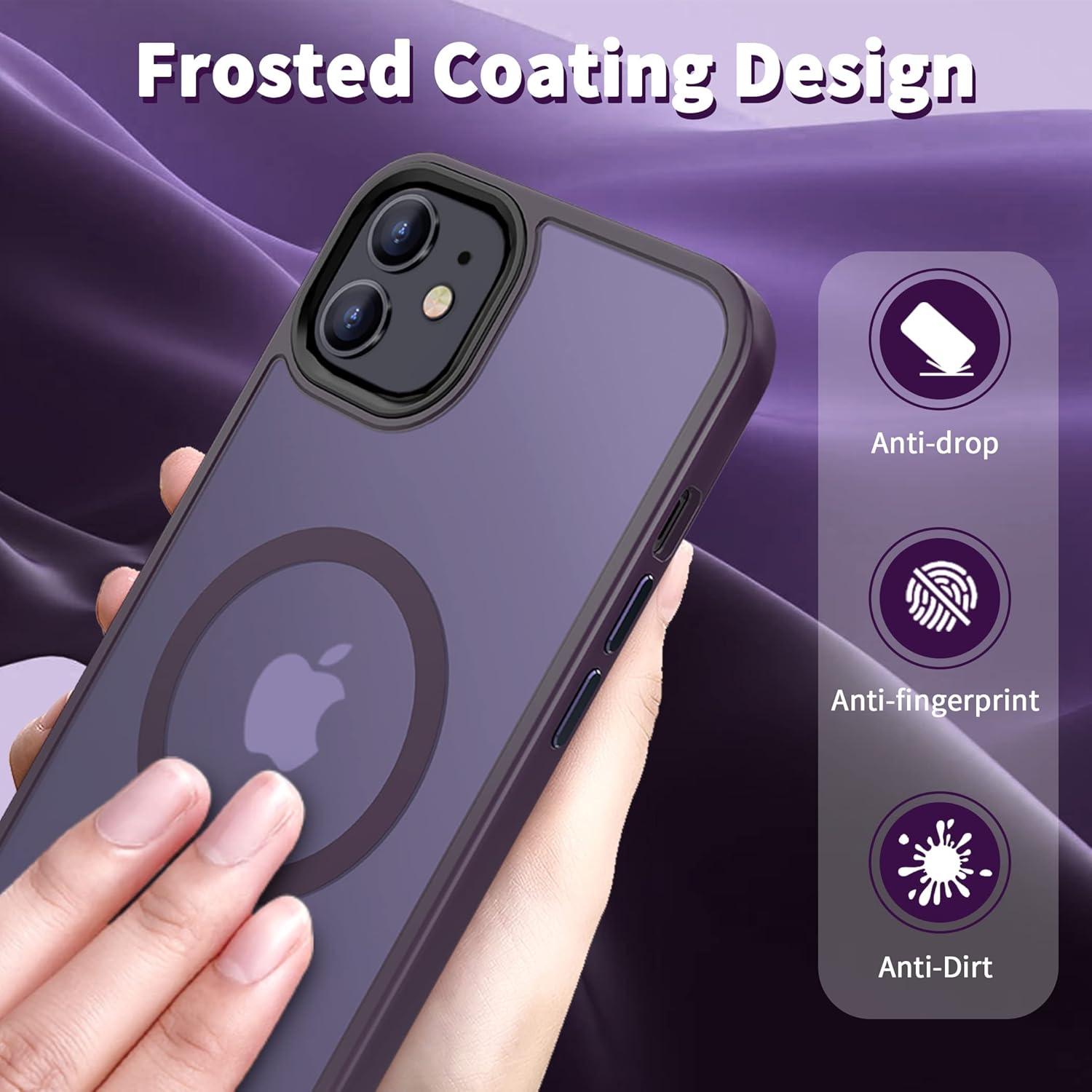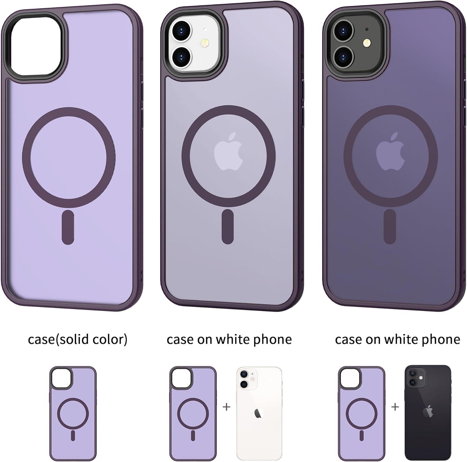 CACOE Magnetic Case for iPhone 16 6.1 inch, Compatible with MagSafe, Thin Slim Fit Anti-Fingerprint Shockproof Bumper TPU Protective Cover for Women Men Girls(Matte Black)(Dark Purple)