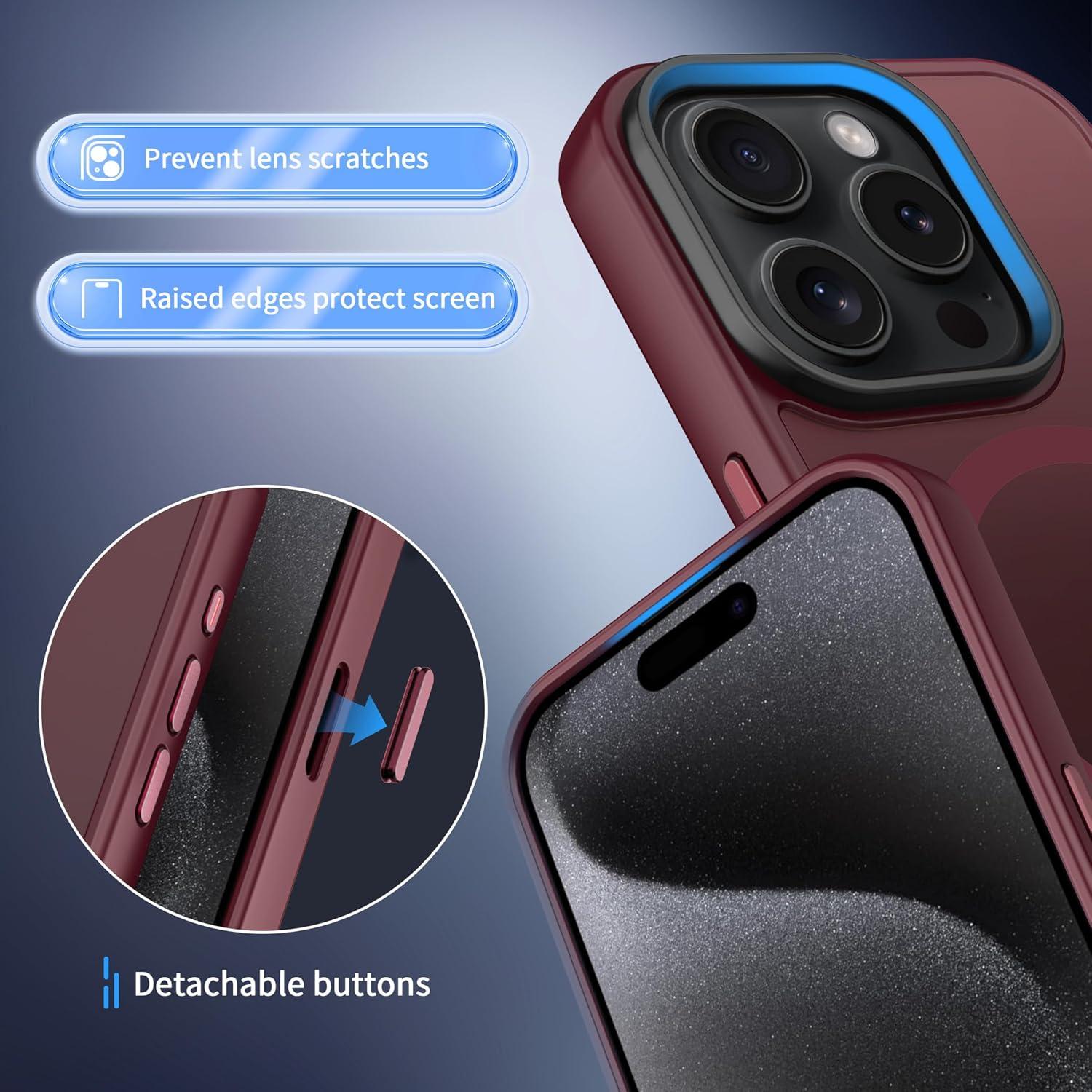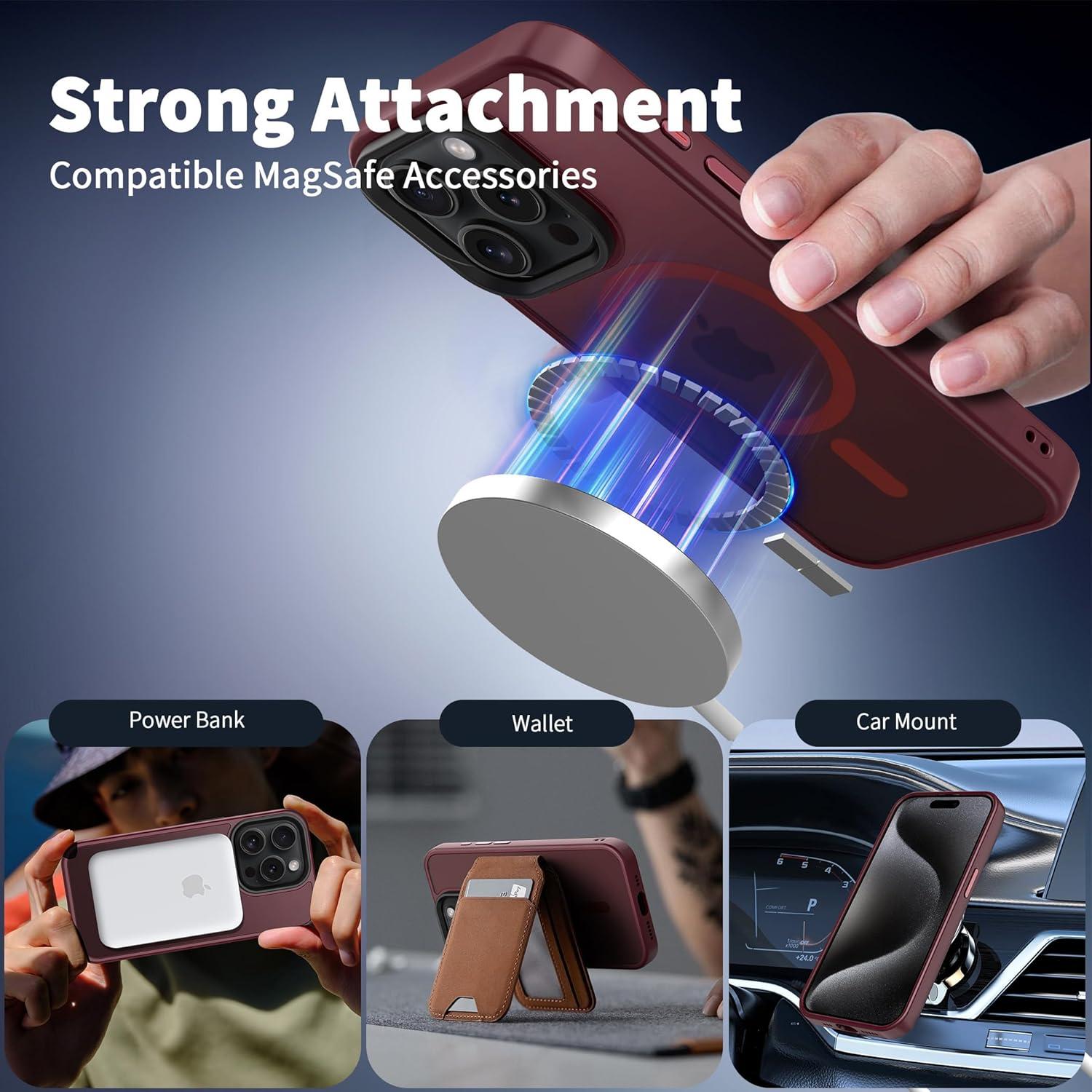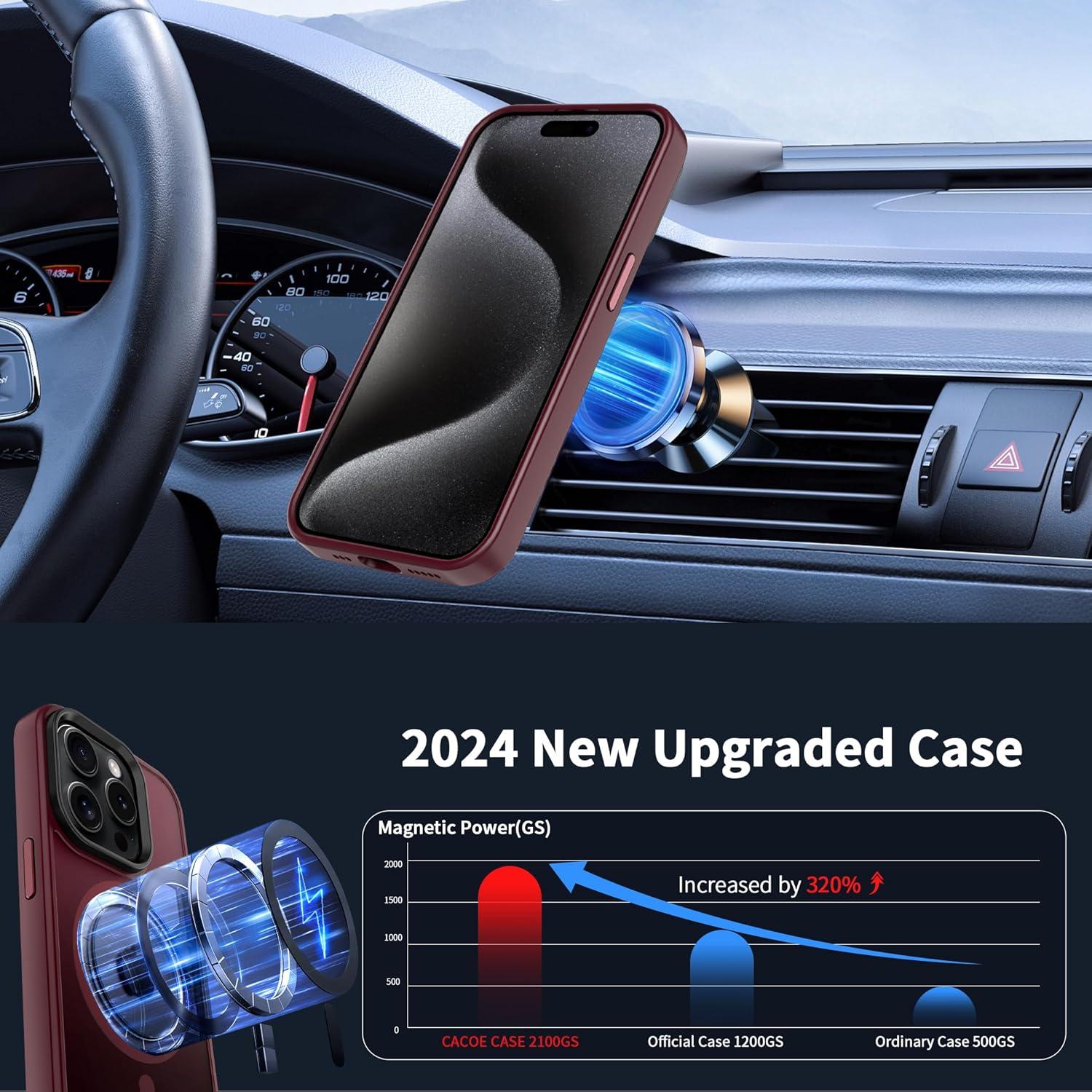 CACOE Magnetic Case for iPhone 16 6.1 inch, Compatible with MagSafe, Thin Slim Fit Anti-Fingerprint Shockproof Bumper TPU Protective Cover for Women Men Girls(Matte Black)(Dark Red)