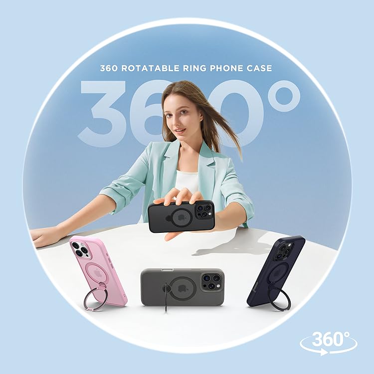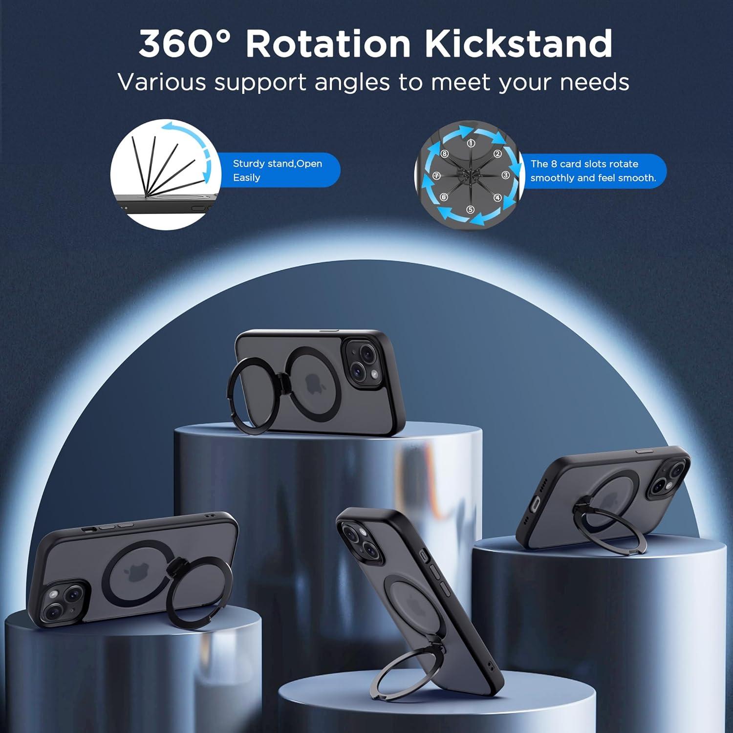 CACOE Magnetic Case for iPhone 16 6.1 inch with 360 Rotatable Ring Stand, Compatible with MagSafe Car Phone Mount, Cases Cover Phone Holder for Desk Meeting/Videos(Matte Black)(Matte Black)