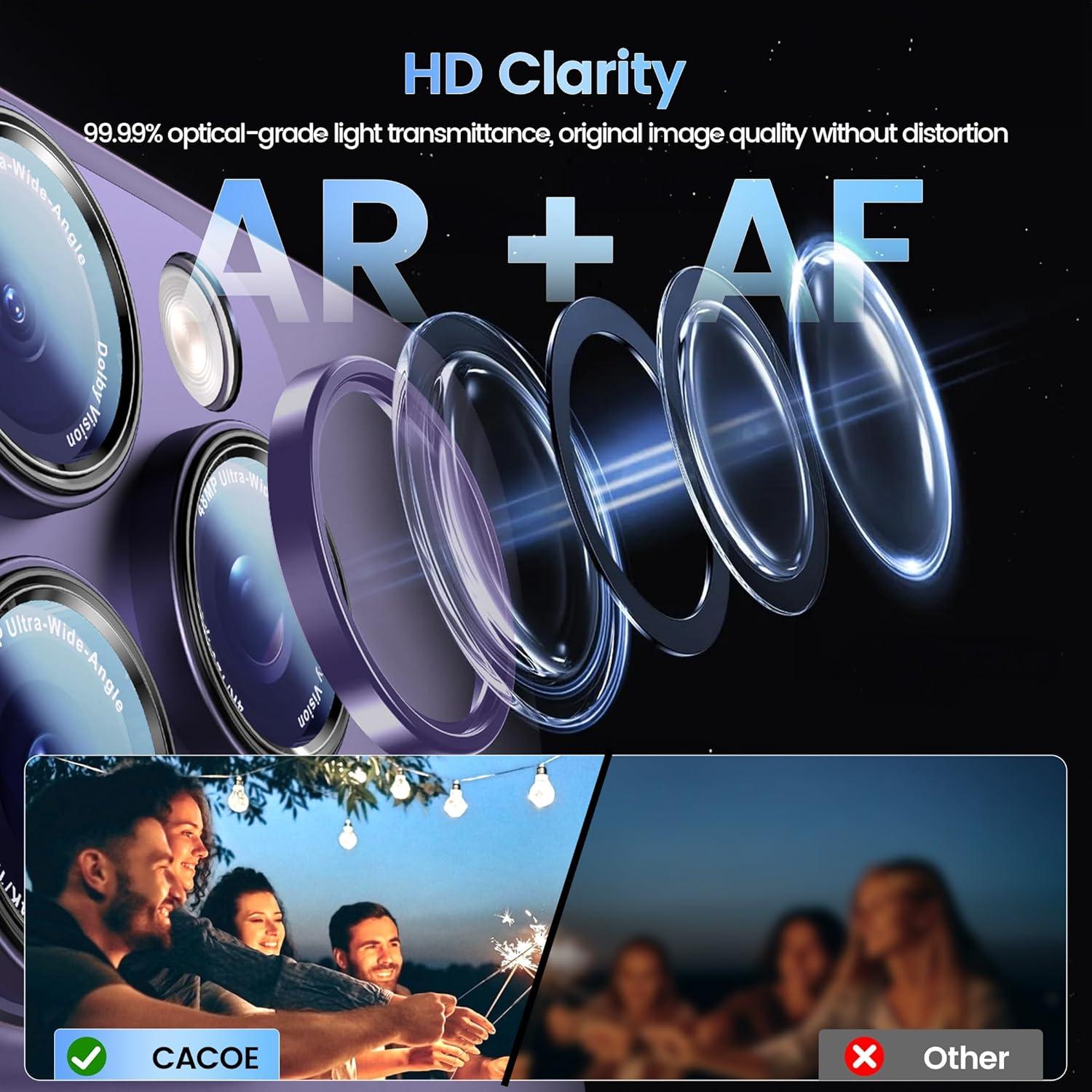 CACOE for iPhone 14 Pro/14 Pro Max/16 Pro/16 Pro Max Camera Lens Protector – Metal Frame Tempered Glass Cover, [Anti-Scratch] [Drop-Proof][Strong-Adhesion] Camera Screen Cover(Black)(Dark Purple)