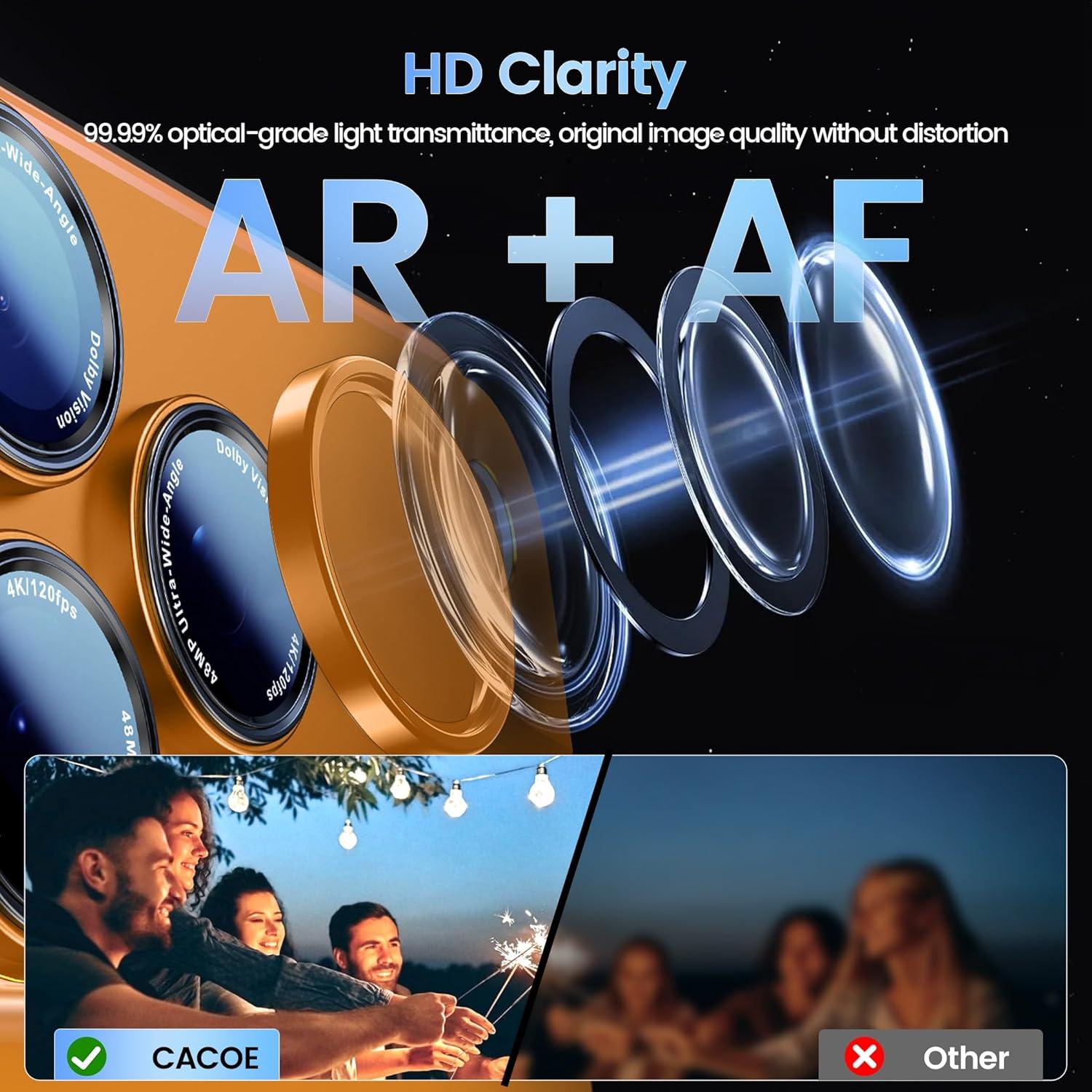 CACOE for iPhone 14 Pro/14 Pro Max/16 Pro/16 Pro Max Camera Lens Protector – Metal Frame Tempered Glass Cover, [Anti-Scratch] [Drop-Proof][Strong-Adhesion] Camera Screen Cover(Black)(Desert Gold)