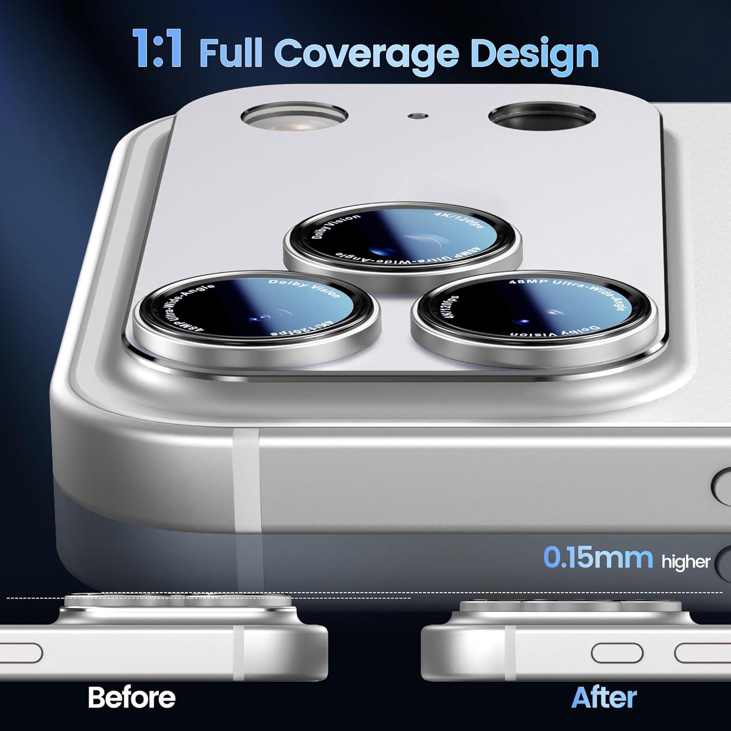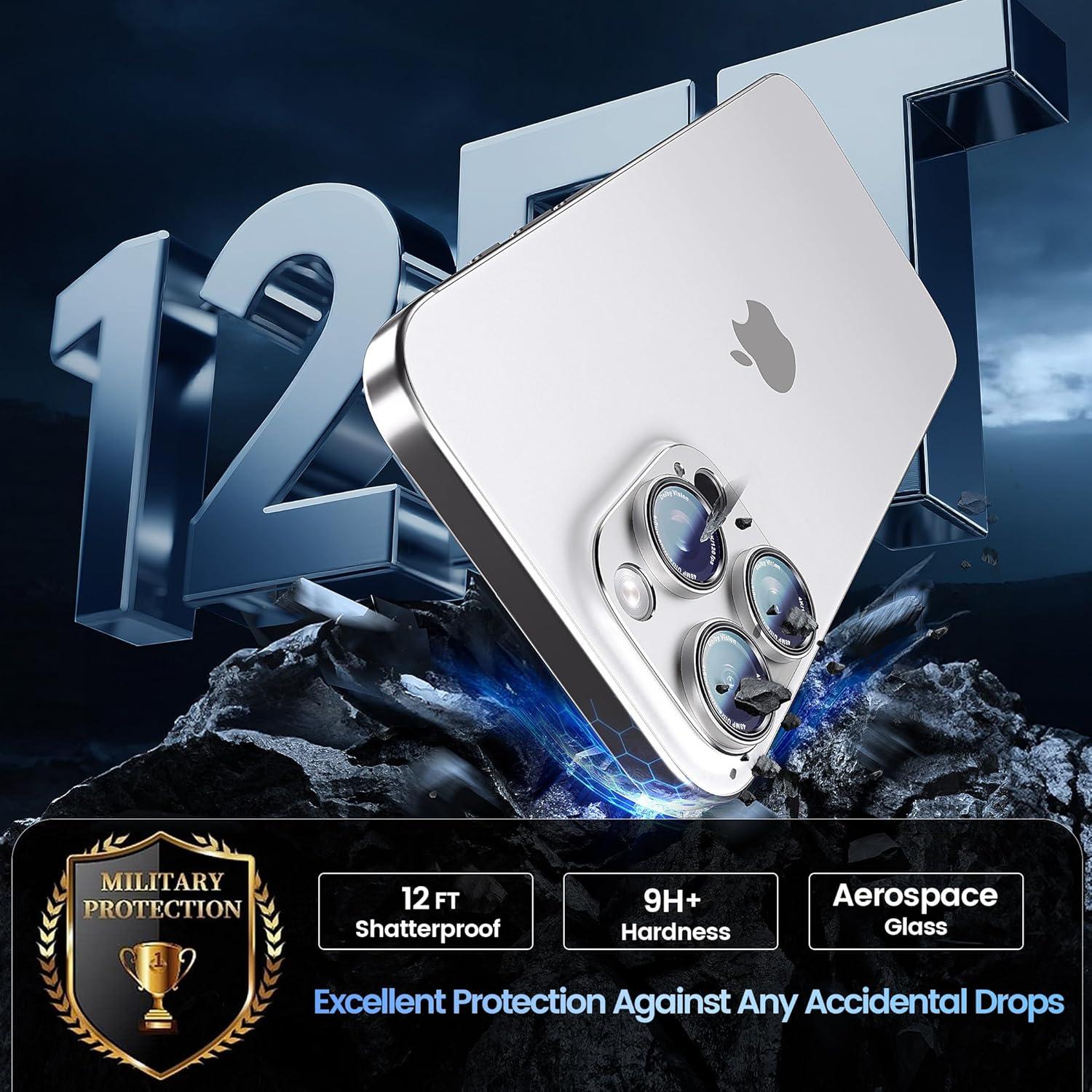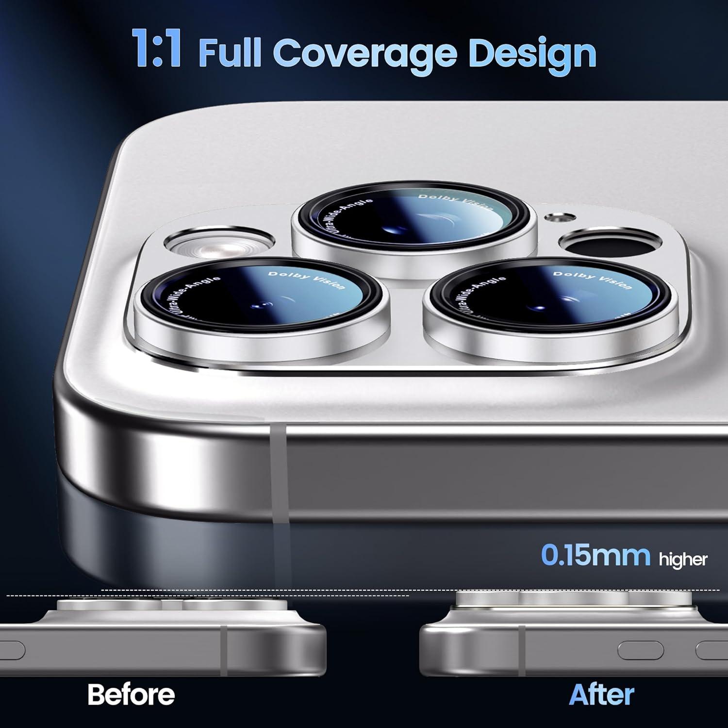 CACOE for iPhone 14 Pro/14 Pro Max/16 Pro/16 Pro Max Camera Lens Protector – Metal Frame Tempered Glass Cover, [Anti-Scratch] [Drop-Proof][Strong-Adhesion] Camera Screen Cover(Black)(Silver)