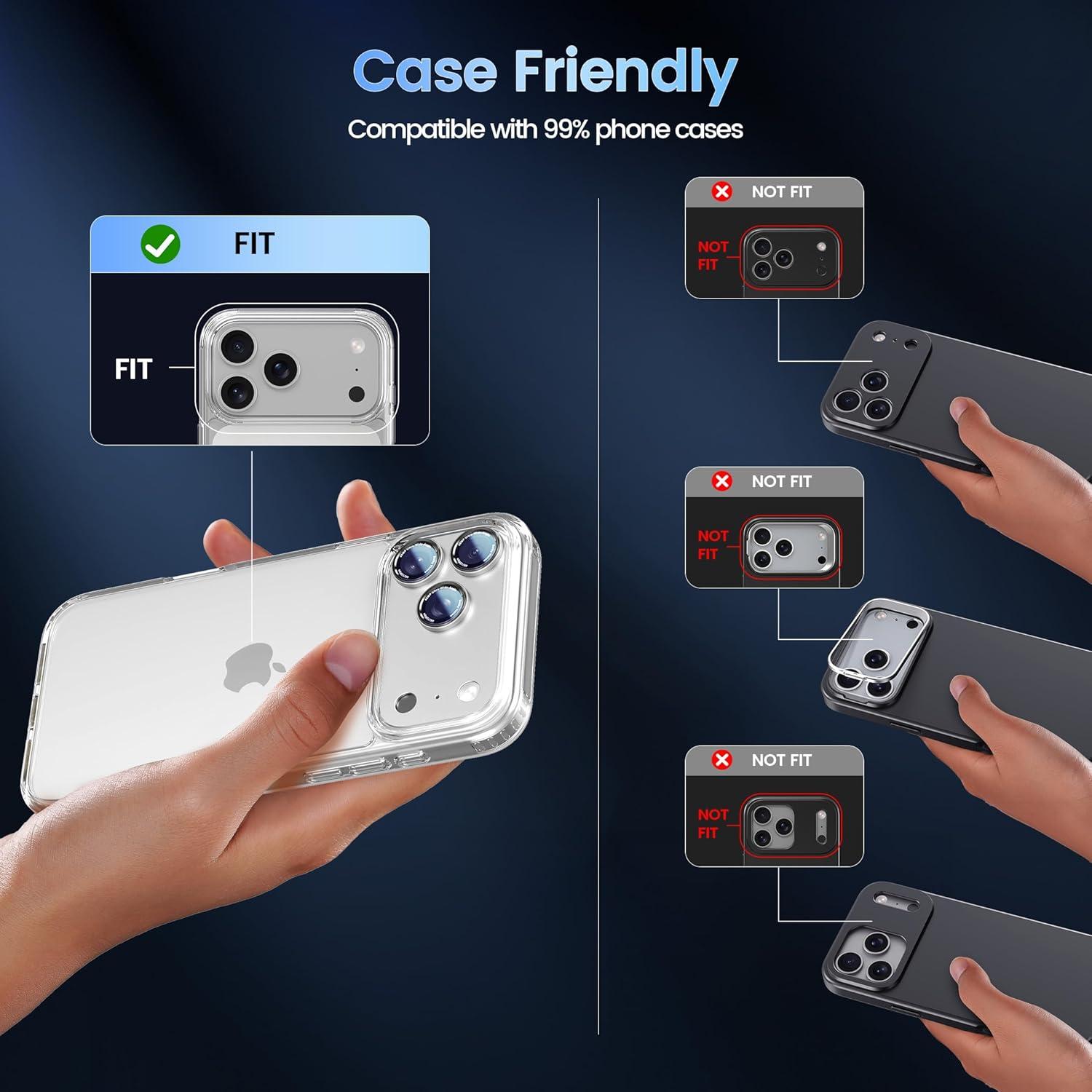 CACOE for iPhone 17 Pro Max/17 Pro/16 Pro Max/16 Pro/15 Pro Max/15 Pro/14 Pro Max/14 Pro Camera Lens Protector, [Anti-Scratch] [Drop-Proof][Strong-Adhesion] Camera Screen Cover(Dark Blue)(Dark Blue)