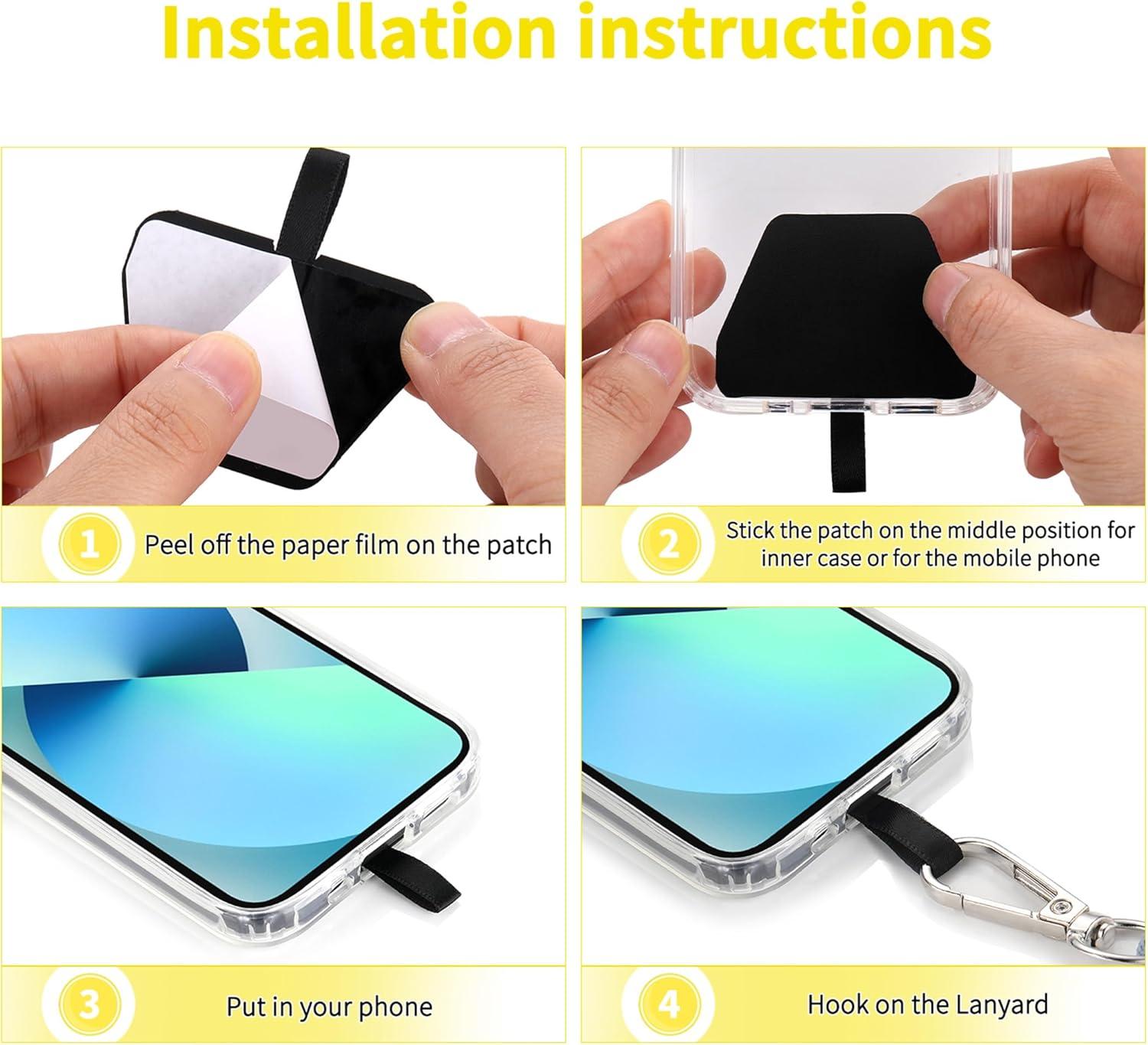 CACOE Phone Lanyard 2 Pcs-1 Pcs Adjustable Neck Strap,1 Pcs Wrist Strap,2 Pads,Universal Crossbody Multifuctional Cell Phone Lanyards Compatible with Most Smartphones(Black)(Yellow)