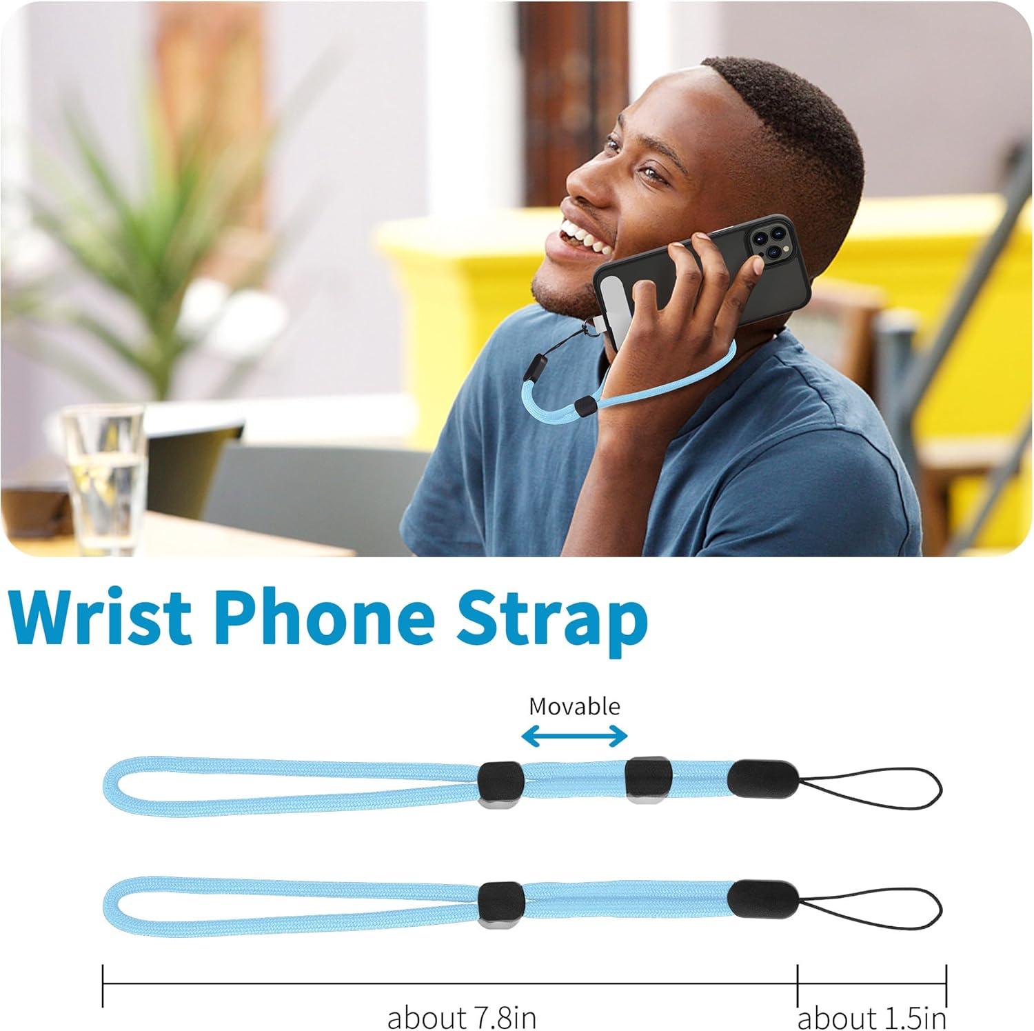 CACOE Phone Lanyard 2 Pcs-1 Pcs Adjustable Neck Strap,1 Pcs Wrist Strap,2 Pads,Universal Crossbody Multifuctional Cell Phone Lanyards Compatible with Most Smartphones(Black)(Light Blue)