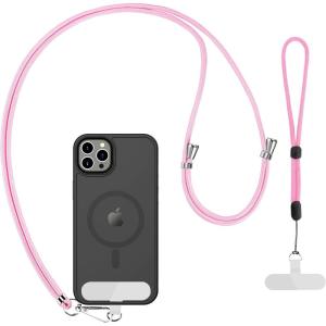 CACOE Phone Lanyard 2 Pcs-1 Pcs Adjustable Neck Strap,1 Pcs Wrist Strap,2 Pads,Universal Crossbody Multifuctional Cell Phone Lanyards Compatible with Most Smartphones(Black)(Pink)