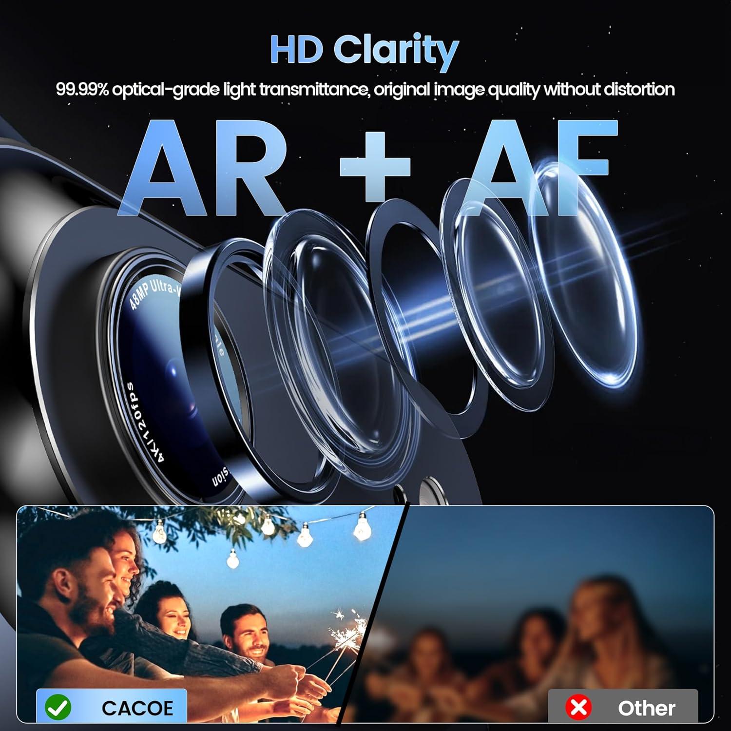 [Durable Defense with Robust Protection]: Engineered for iPhone 17 Pro Max/17 Pro/16 Pro Max/16 Pro/15 Pro Max/15 Pro/14 Pro Max/14 Pro camera modules, CACOE’s protective solution combines tempered glass and aerospace-grade aluminum alloy. Featuring advanced impact dispersion technology, it ensures full-coverage safeguarding against shattering while delivering enhanced scratch resistance and superior abrasion durability.