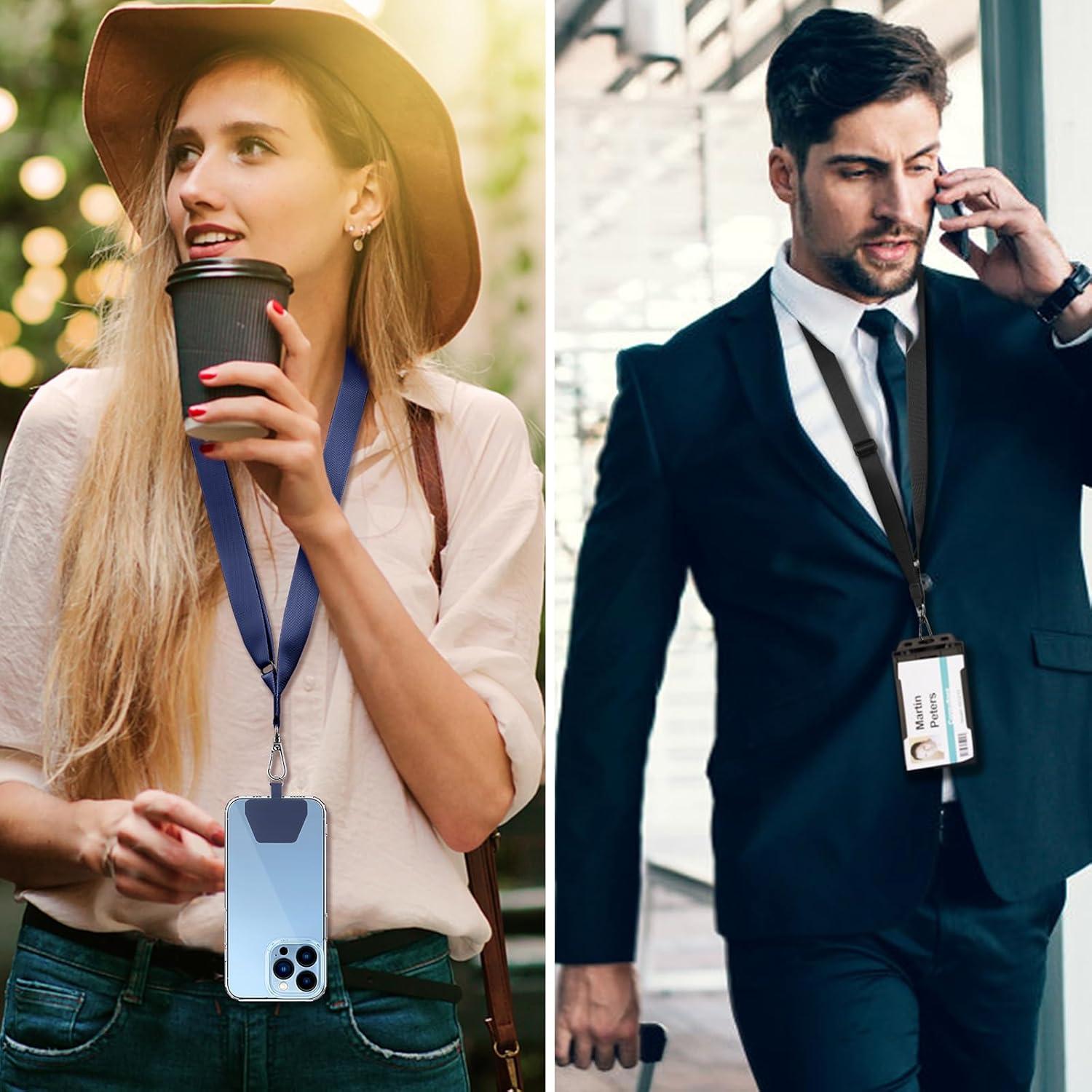CACOE Phone Lanyard 2 Pack-2× Adjustable Neck Strap,2× Phone Patches,Universal Cell Phone Multifuctional Patch Lanyards Compatible with Most Smartphones(Black+Gray)(Black+dark Blue)