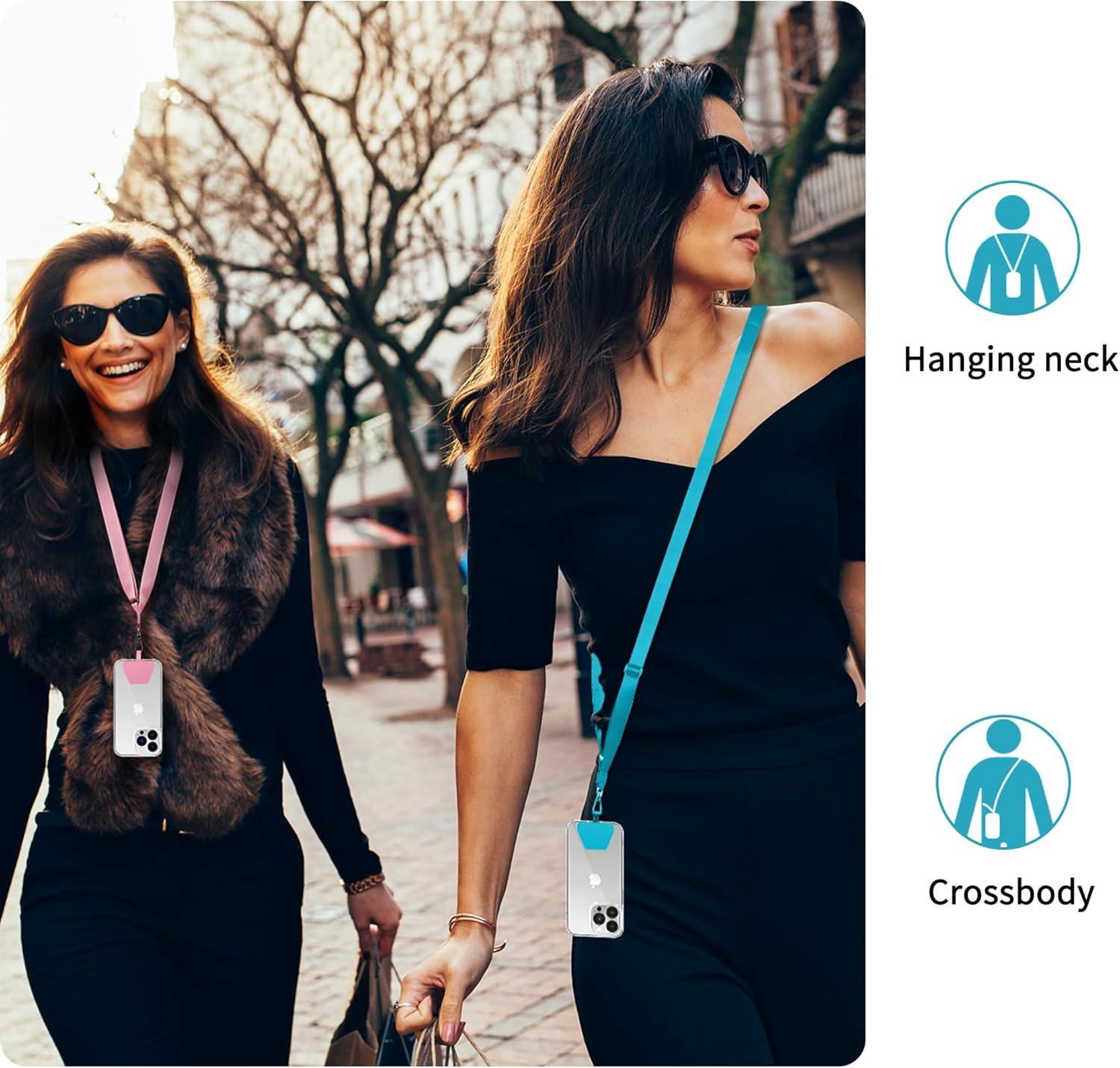 CACOE Phone Lanyard 2 Pack-2× Adjustable Neck Strap,2× Phone Patches,Universal Cell Phone Multifuctional Patch Lanyards Compatible with Most Smartphones(Black+Gray)(Pink+blue)