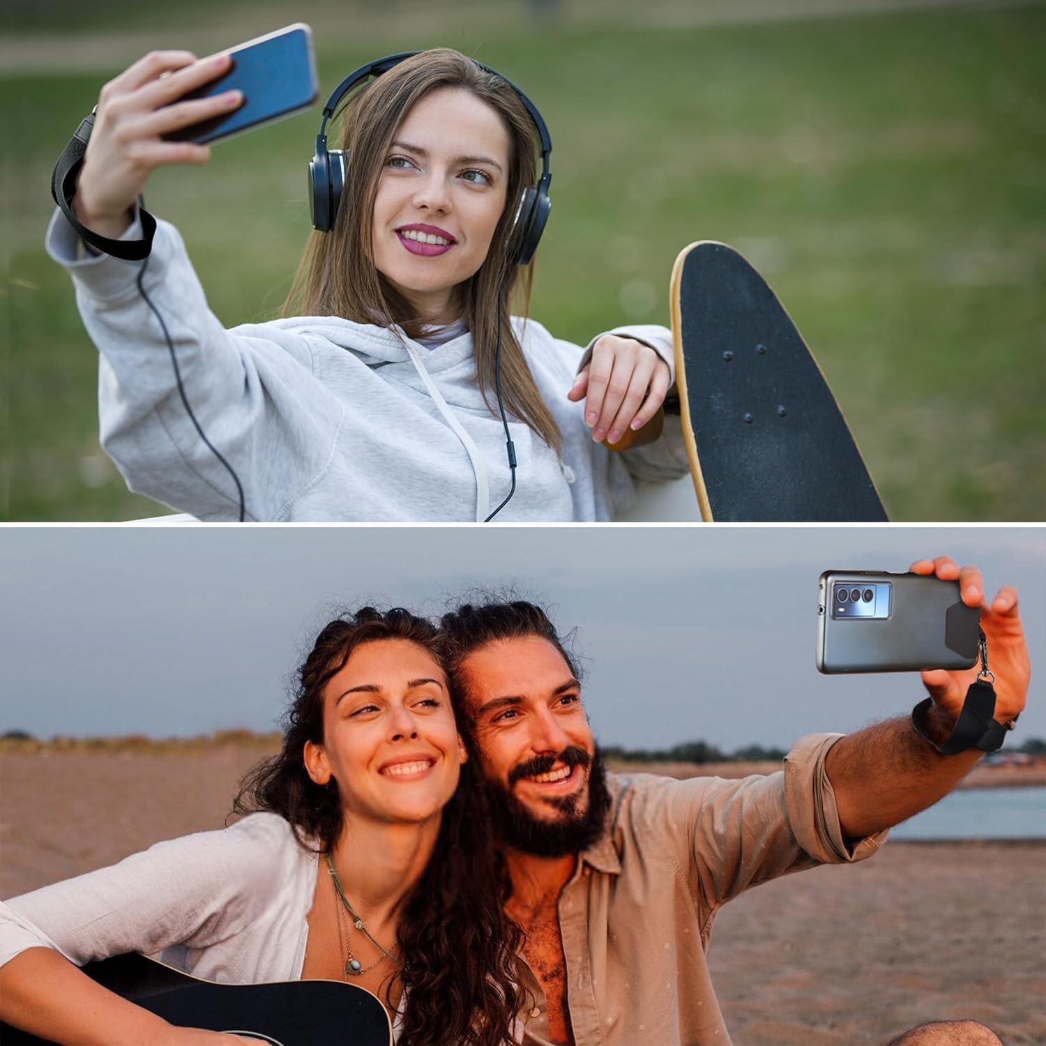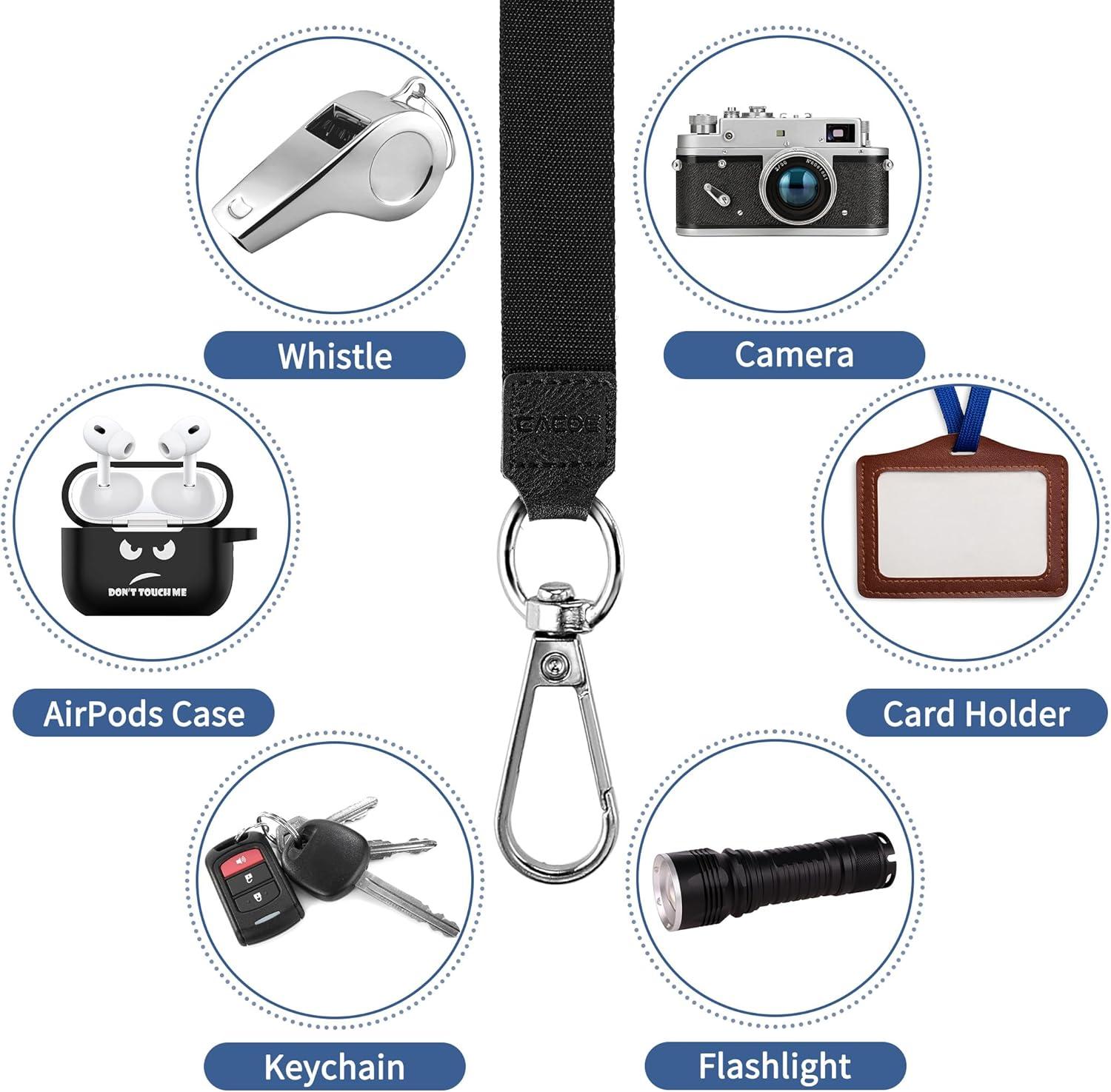 CACOE Phone Lanyard 2 Pcs-1 Pcs Adjustable Neck Strap,1 Pcs Wrist Strap,2 Pads,Universal Crossbody Multifuctional Cell Phone Lanyards Compatible with Most Smartphones(Black)(Black)
