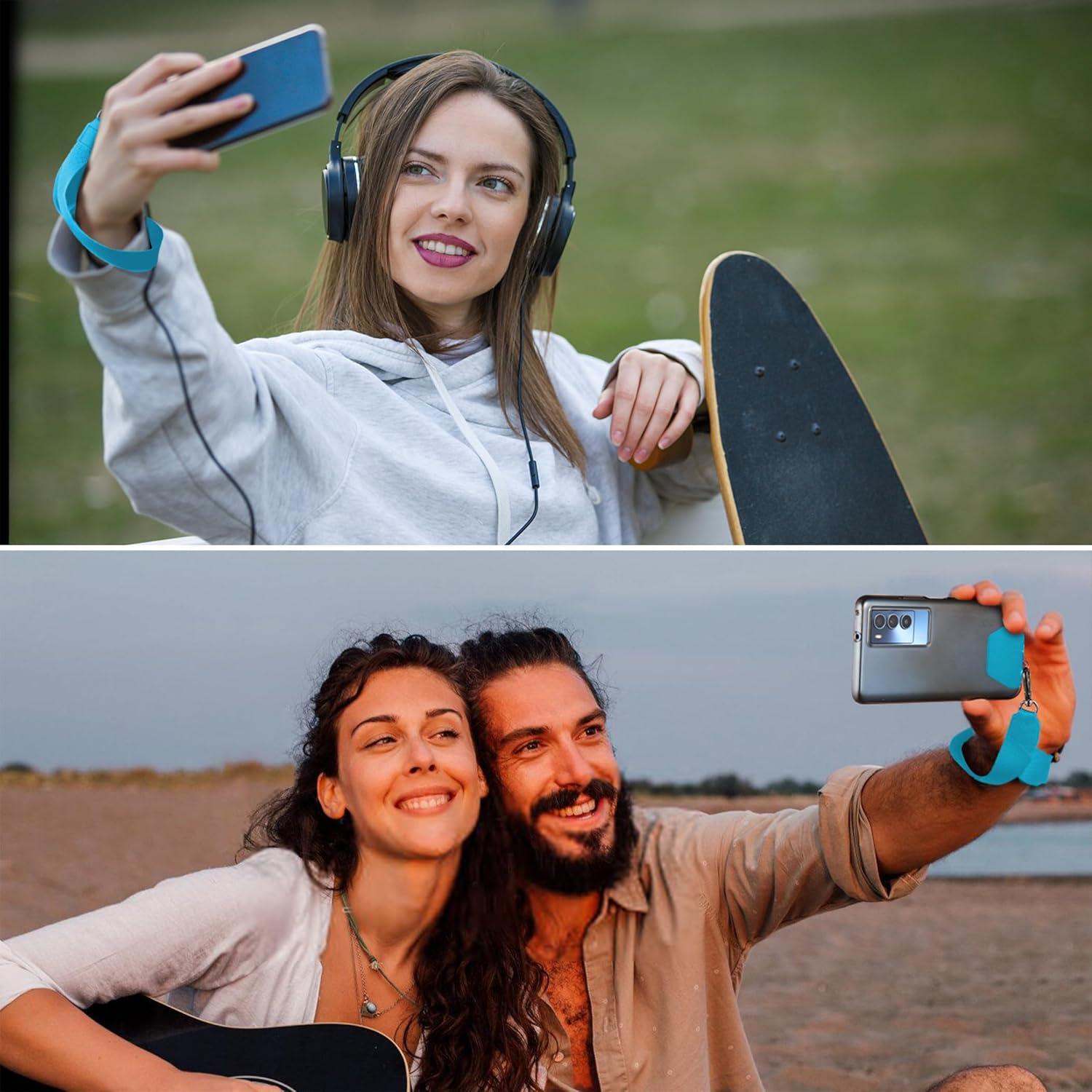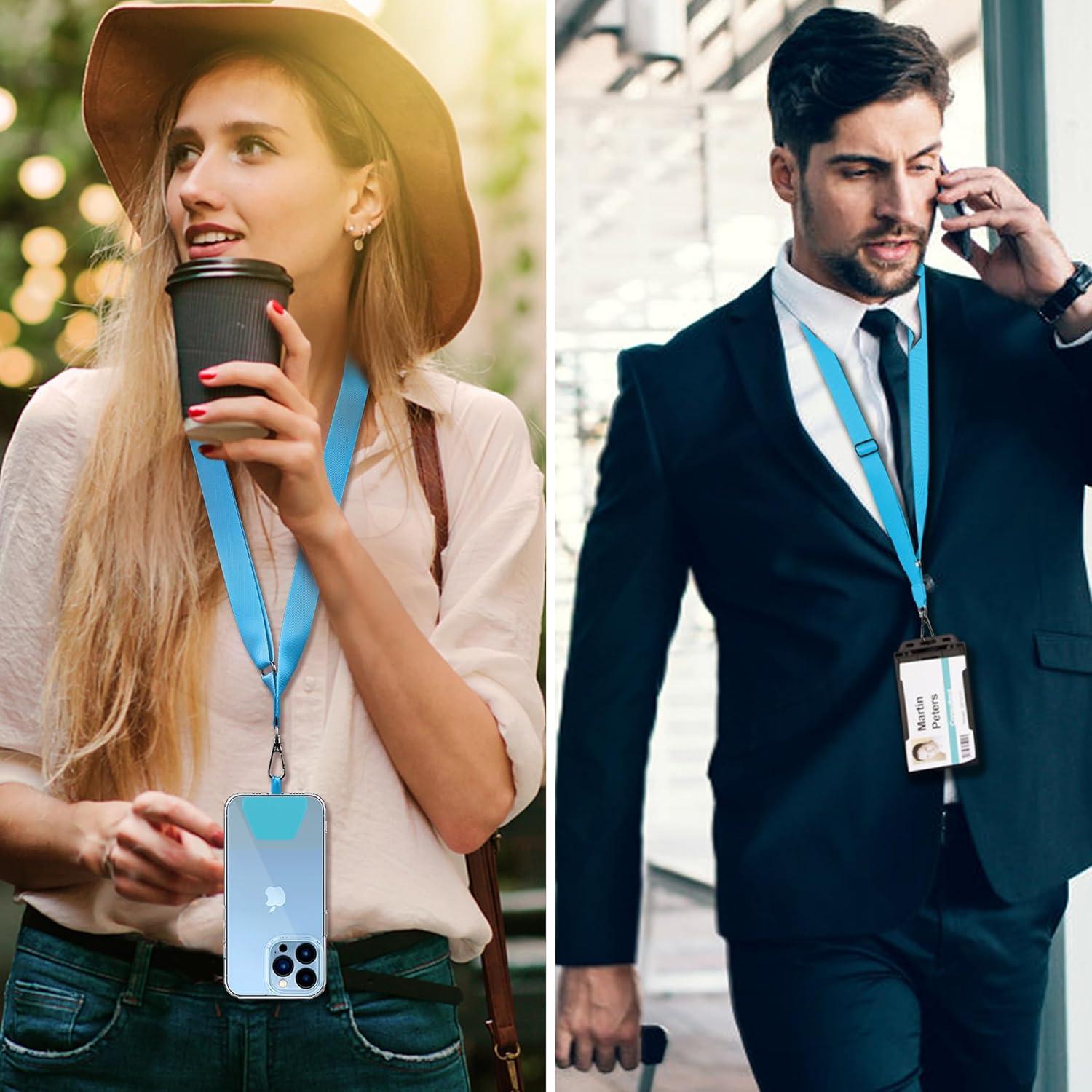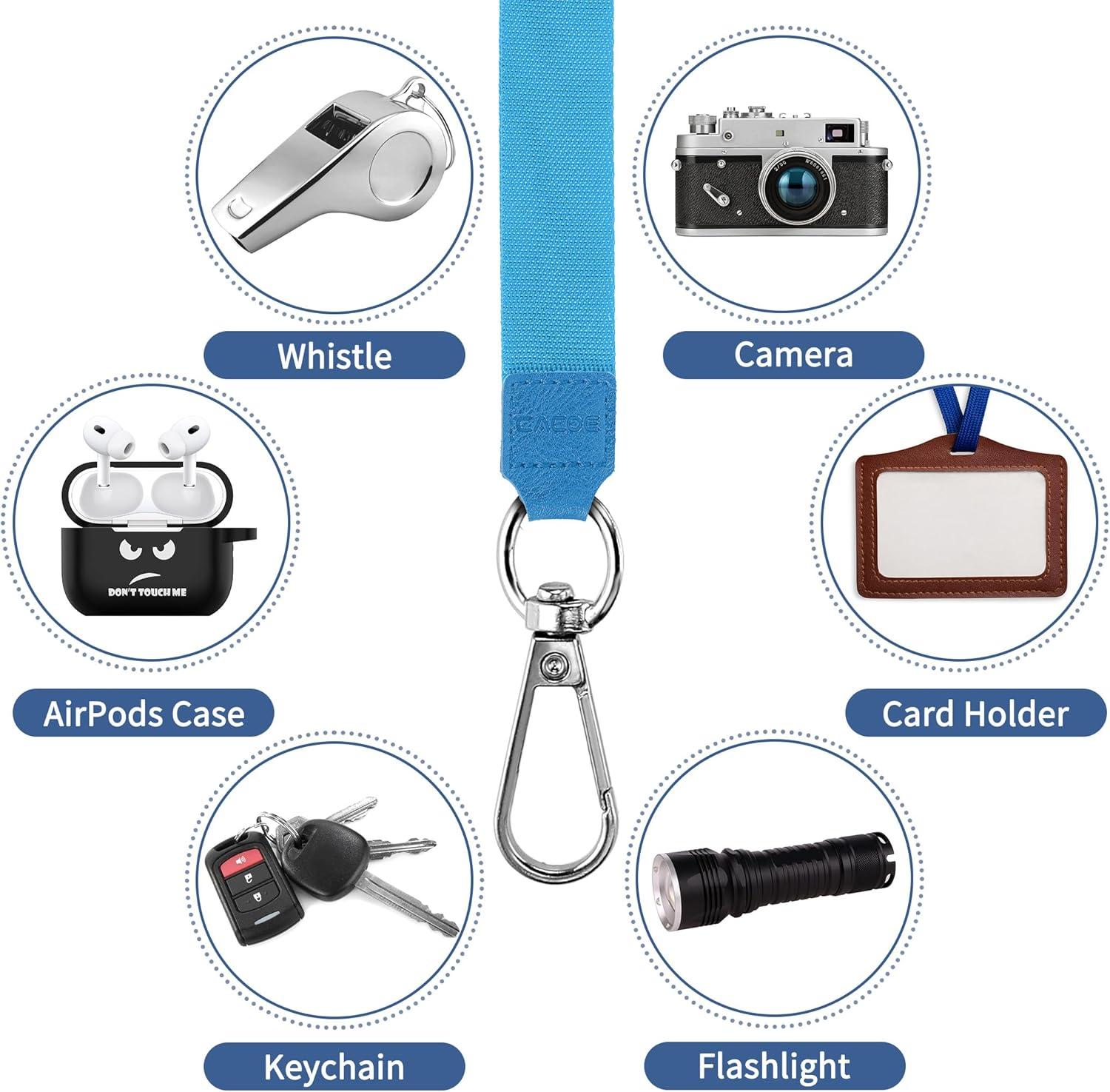 CACOE Phone Lanyard 2 Pcs-1 Pcs Adjustable Neck Strap,1 Pcs Wrist Strap,2 Pads,Universal Crossbody Multifuctional Cell Phone Lanyards Compatible with Most Smartphones(Black)(Light Blue)