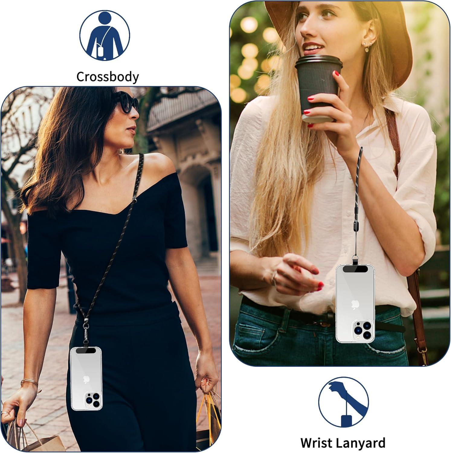 CACOE Phone Lanyard-2 PCS Adjustable Neck Strap,Universal Crossbody Multifuctional Cell Phone Lanyards Compatible with Most Smartphones(Black+Light Blue)(Black Silver)