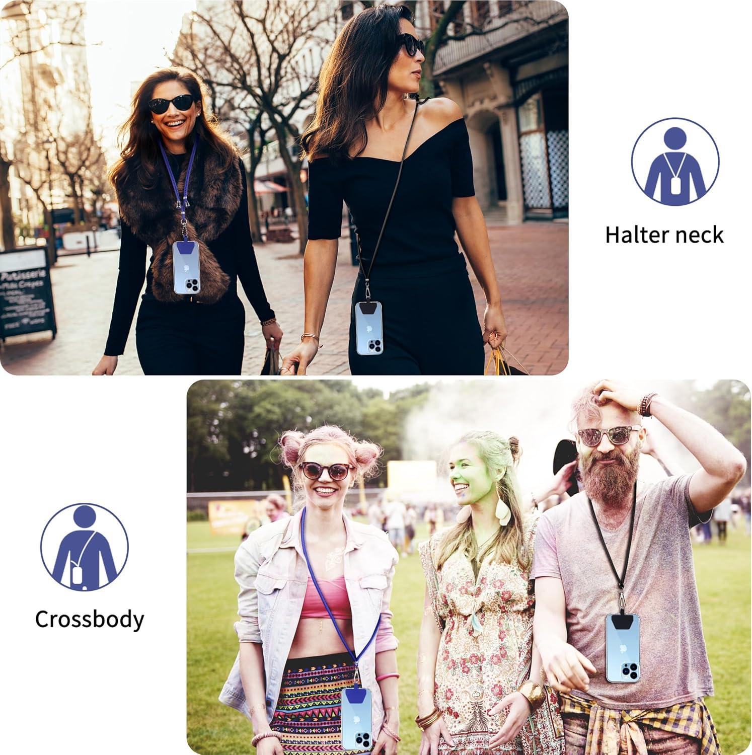 CACOE Phone Lanyard-2 PCS Adjustable Neck Strap,Universal Crossbody Multifuctional Cell Phone Lanyards Compatible with Most Smartphones(Black+Light Blue)(Black+dark Blue)
