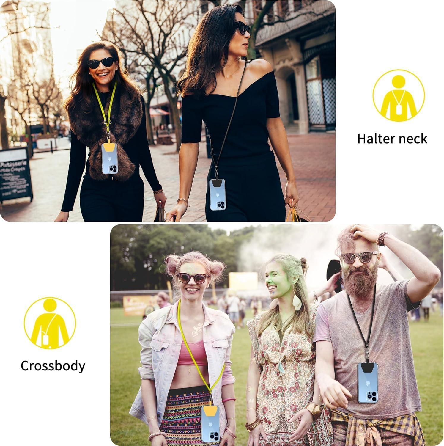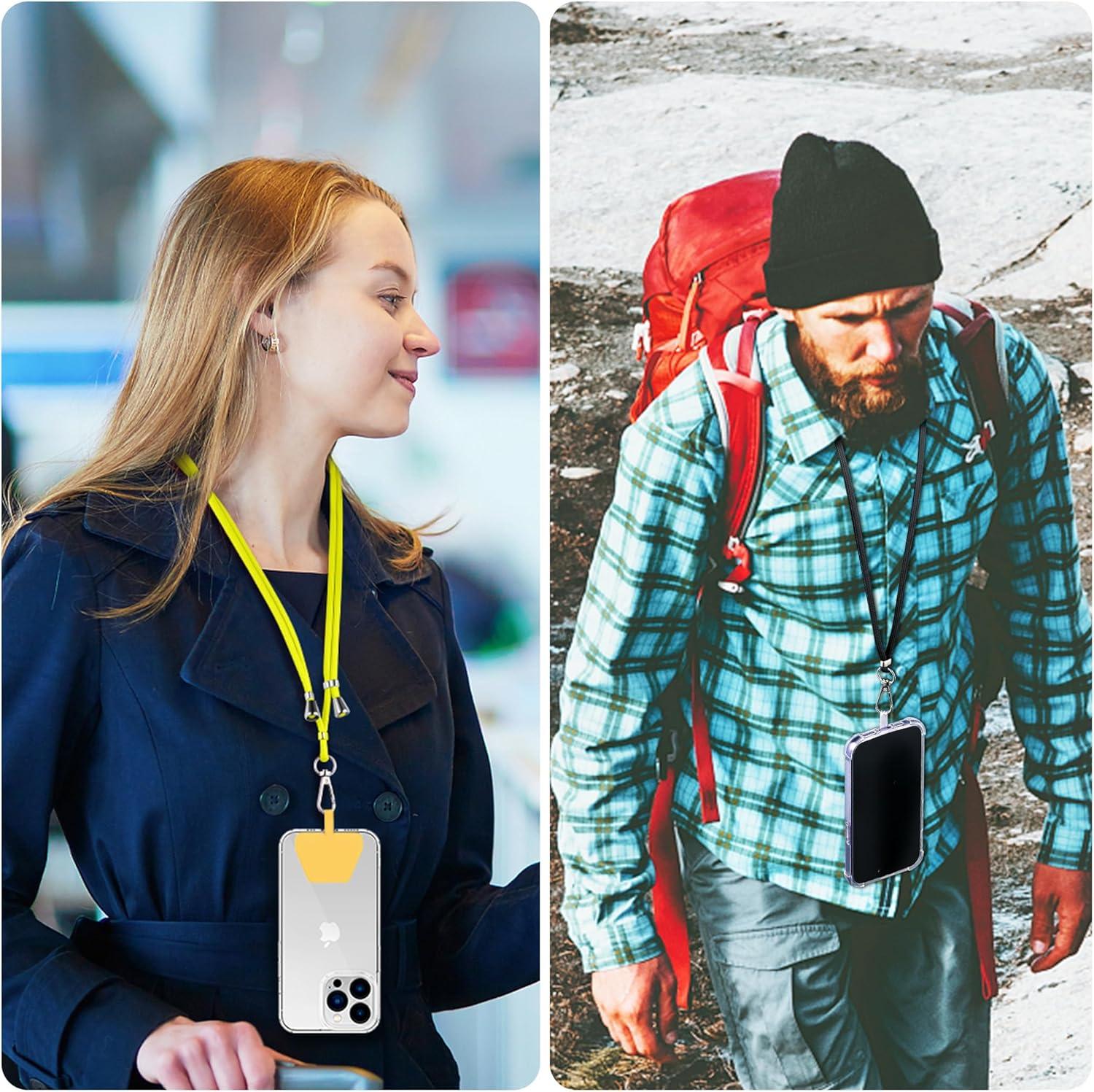 CACOE Phone Lanyard-2 PCS Adjustable Neck Strap,Universal Crossbody Multifuctional Cell Phone Lanyards Compatible with Most Smartphones(Black+Light Blue)(Black+yellow)