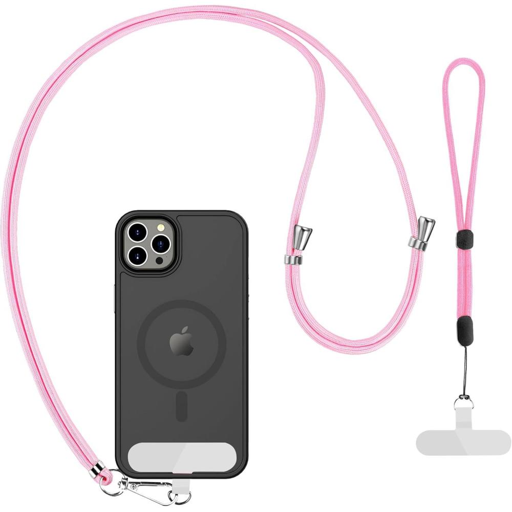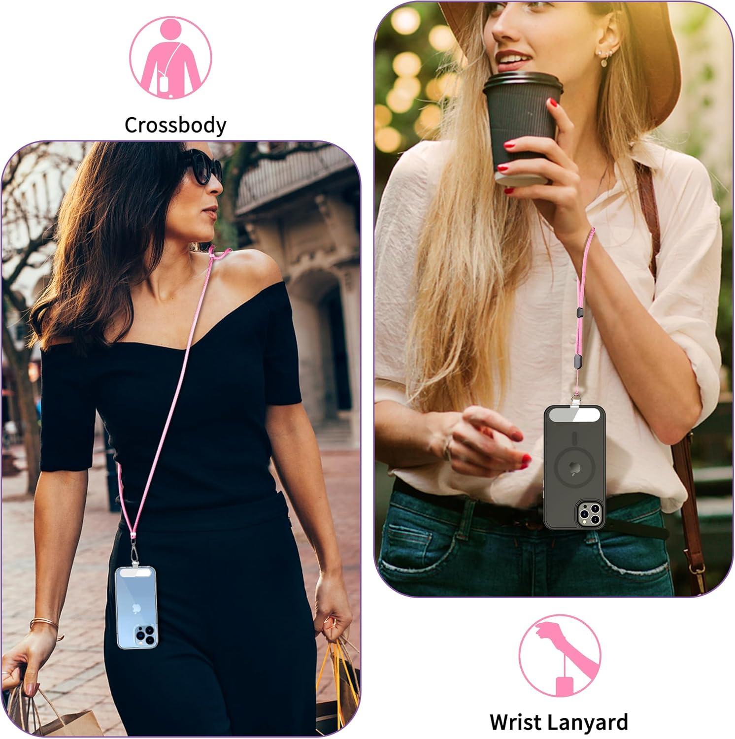 CACOE Phone Lanyard-2 PCS Adjustable Neck Strap,Universal Crossbody Multifuctional Cell Phone Lanyards Compatible with Most Smartphones(Black+Light Blue)(Light Pink)