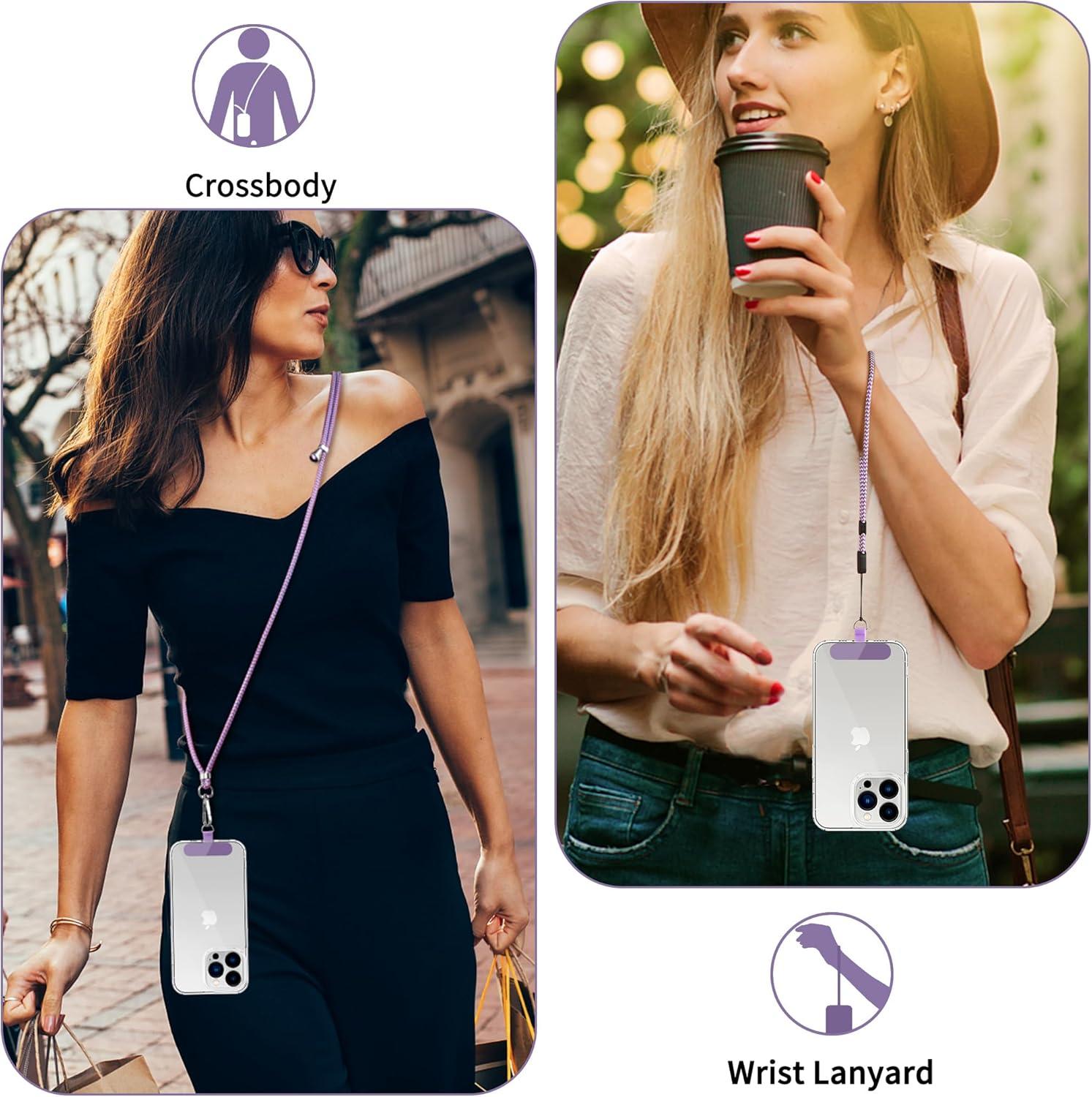 CACOE Phone Lanyard-2 PCS Adjustable Neck Strap,Universal Crossbody Multifuctional Cell Phone Lanyards Compatible with Most Smartphones(Black+Light Blue)(Purple Blue)