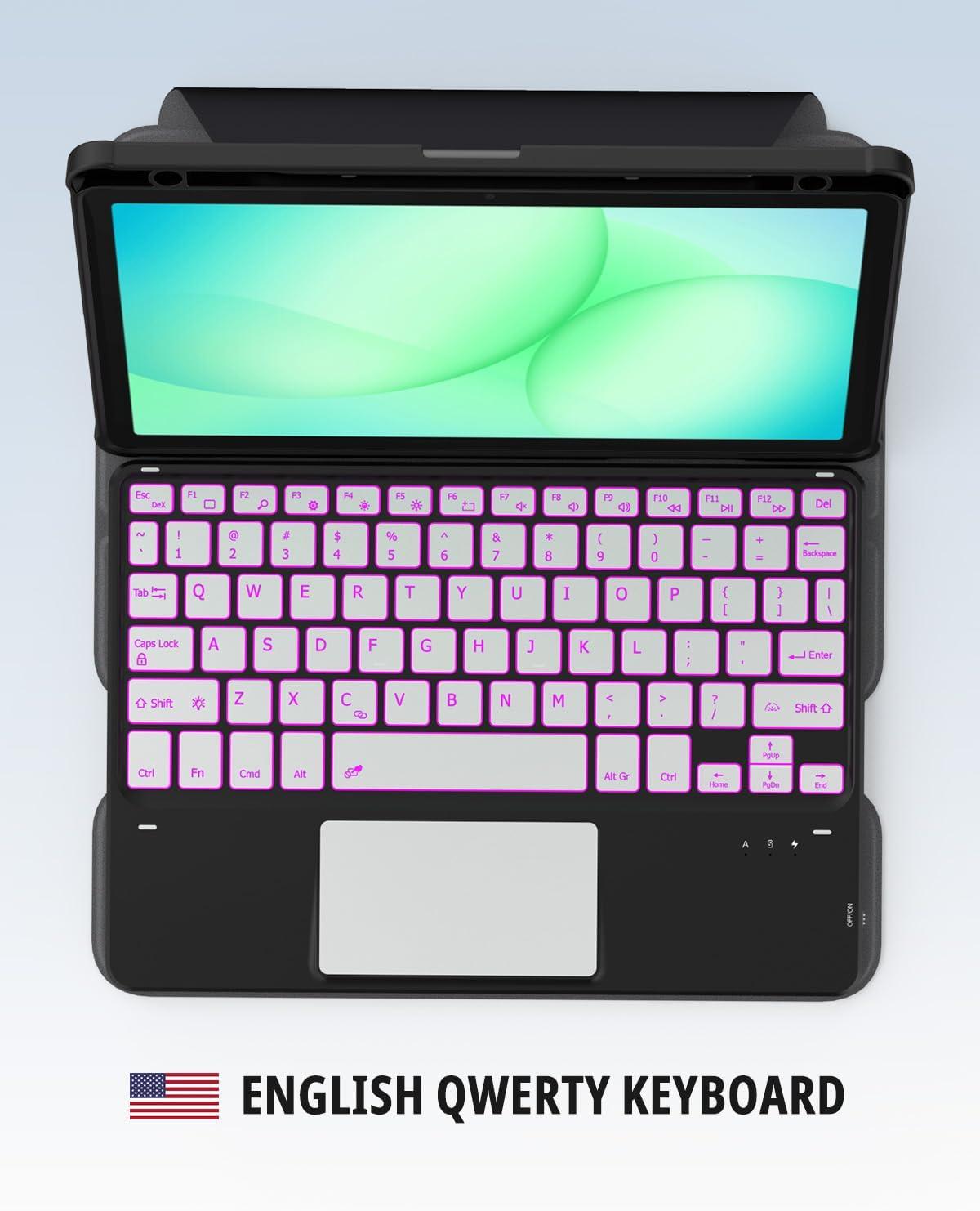 CACOE Rotating Keyboard Case for Samsung Galaxy Tab A11 Plus / A9 Plus 2025/2023 11 inch with Touchpad, 7-Color Backlight, Detachable Wireless Keyboard, 360° Rotation with Stand Function, Black(Rotation)