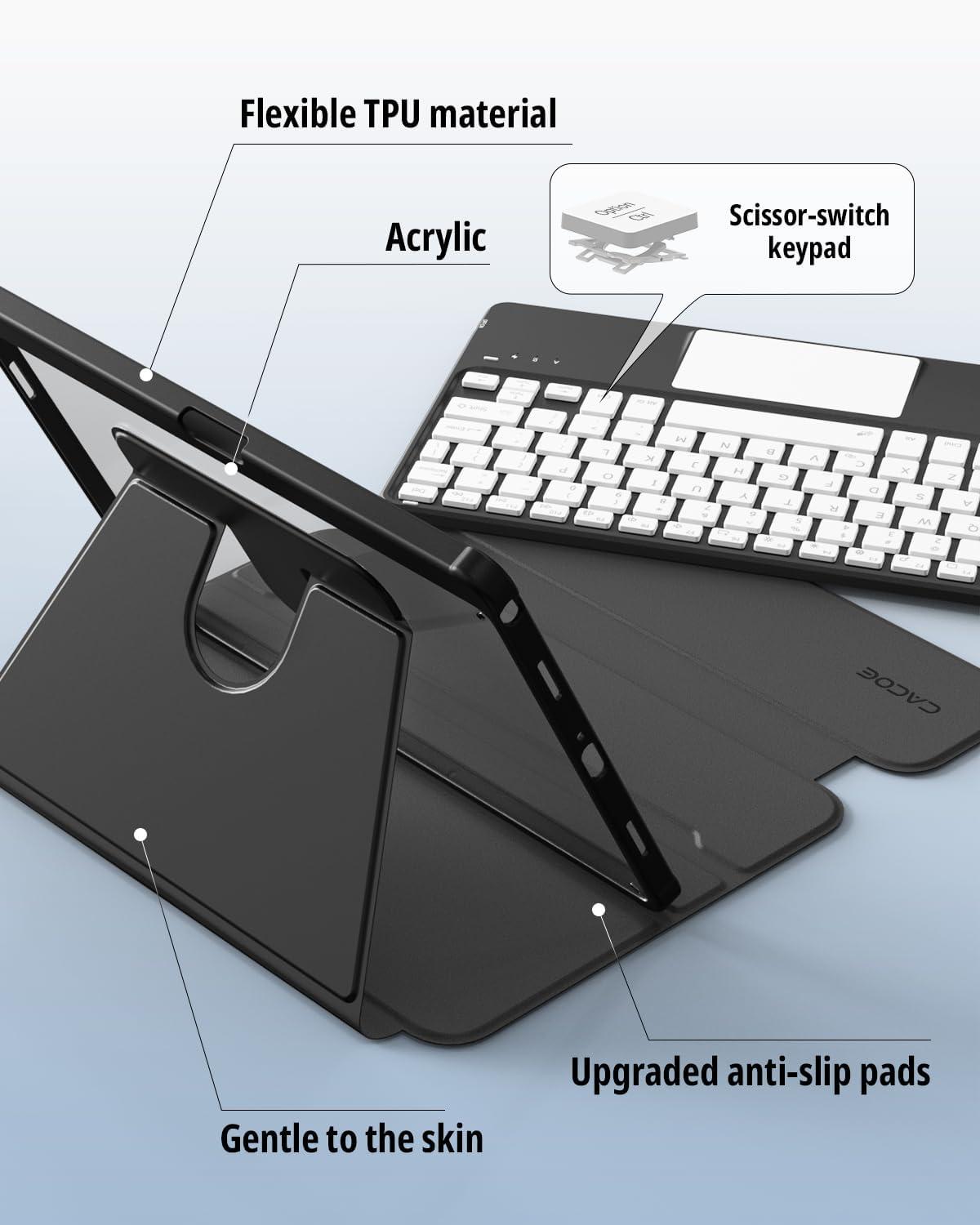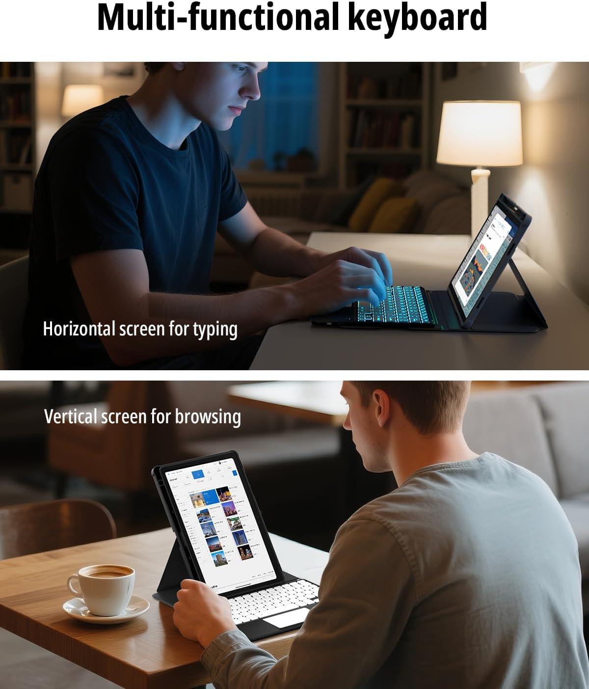 【Multi-angle adjustment, 360-degree protection】The case supports multi-angle adjustment and 360-degree rotation, allowing you to use the tablet at a comfortable angle and enjoy reading, drawing, watching TV, chatting, and more. The keyboard case offers robust all-round protection for your tablet and effectively prevents scratches from accidental drops