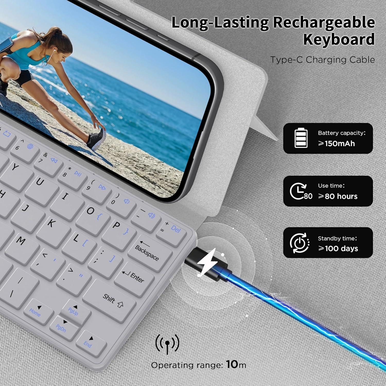 CACOE Wireless Keyboard with Stand, Mini Keyboard for Cell Phone, Ultra-Slim Portable, Foldable, Dual-Channel QWERTY with Stand Holder for Smartphone and More iOS Android Windows, Ocean Blue(Grey-2)