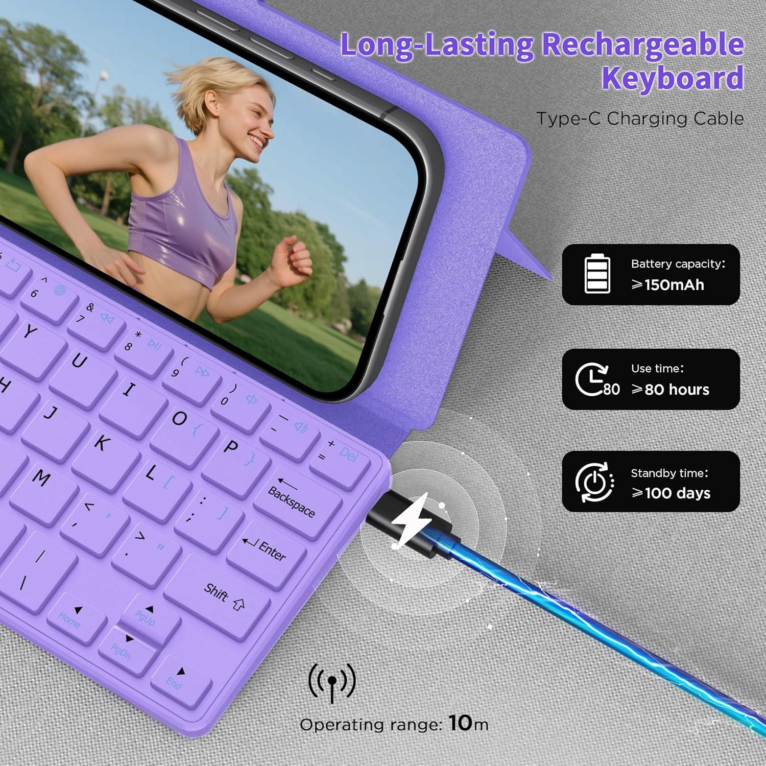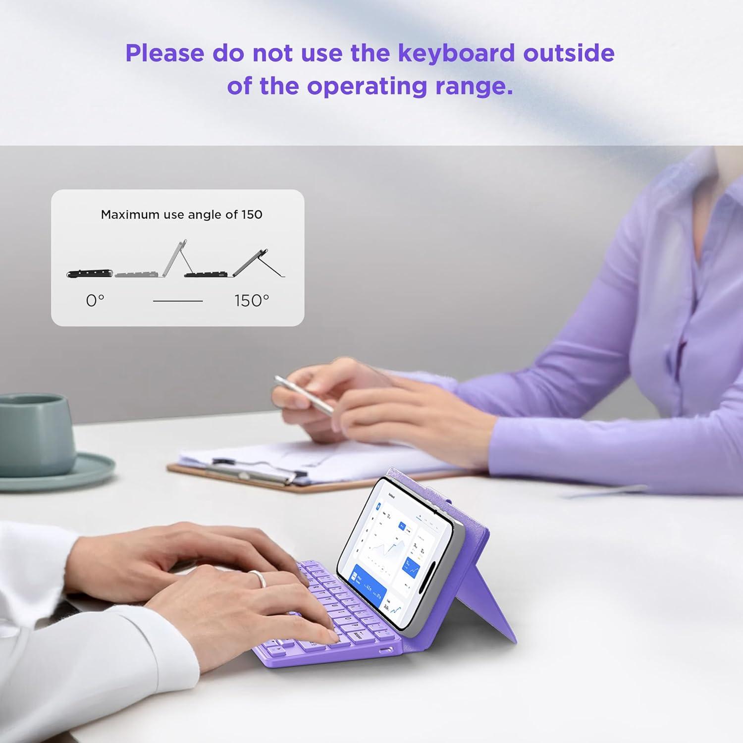 CACOE Wireless Keyboard with Stand, Mini Keyboard for Cell Phone, Ultra-Slim Portable, Foldable, Dual-Channel QWERTY with Stand Holder for Smartphone and More iOS Android Windows, Ocean Blue(Purple)